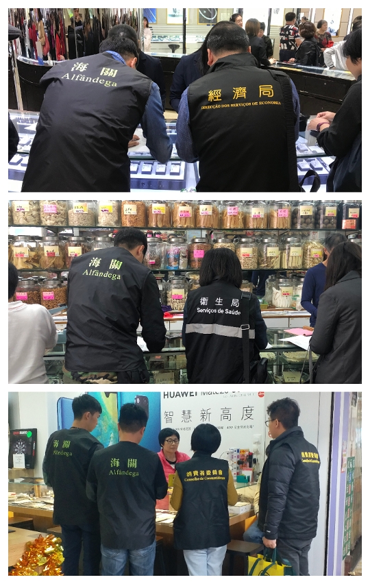 農曆新年將至,預計來澳度歲旅客將會上升,為維護本澳國際旅遊城市的形象,保障消費者權益,海關聯同多個部門持續到各區巡查及宣傳,打擊售賣侵權貨品活動,以維護市場秩序。