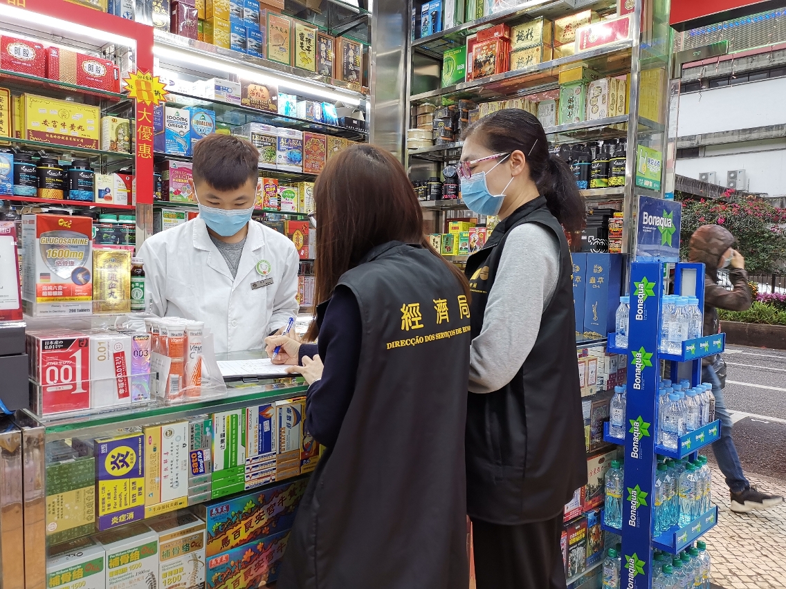 為應對新型冠狀病毒疫情,經濟局在農曆年假期期間持續派人員到市面各區瞭解口罩及衛生用品的供應情況。由1月24日(年三十)至25日,共巡查200多家藥房、超市以及其他零售商號,市面零售商號口罩仍然較為短缺,但未發現有抬價情況。