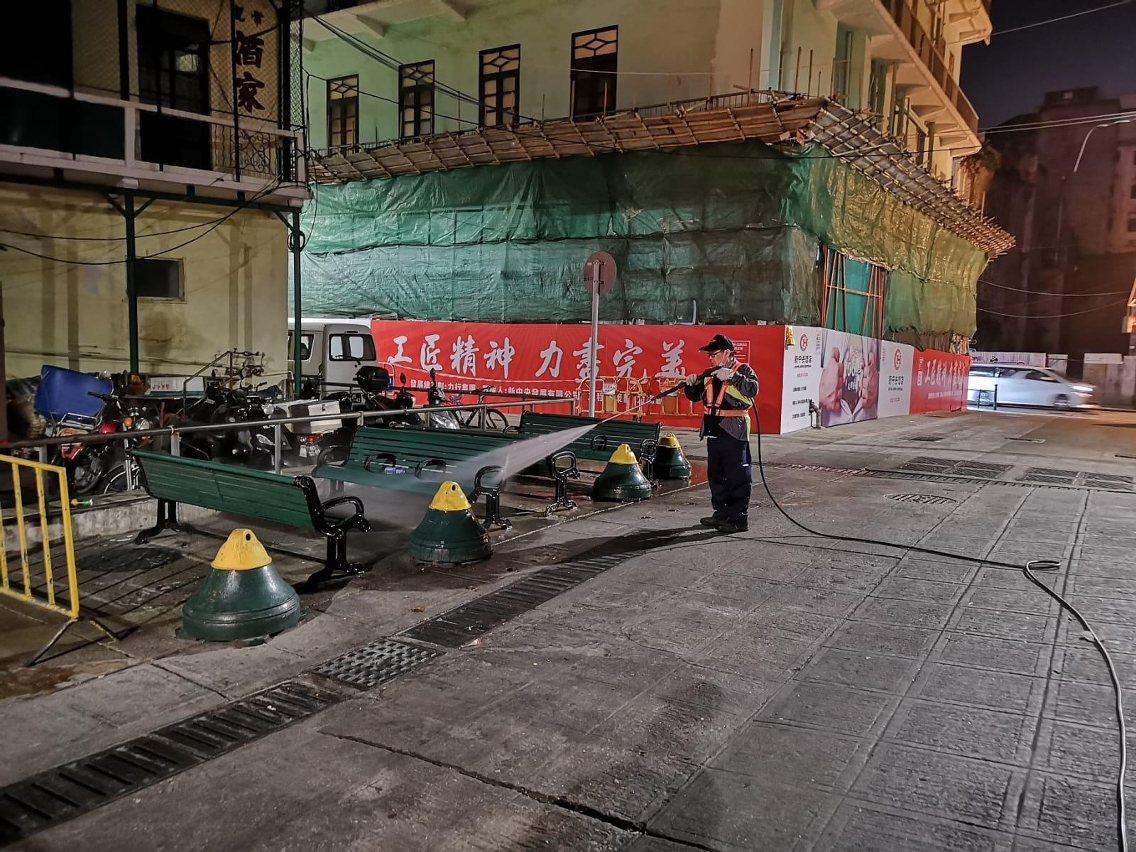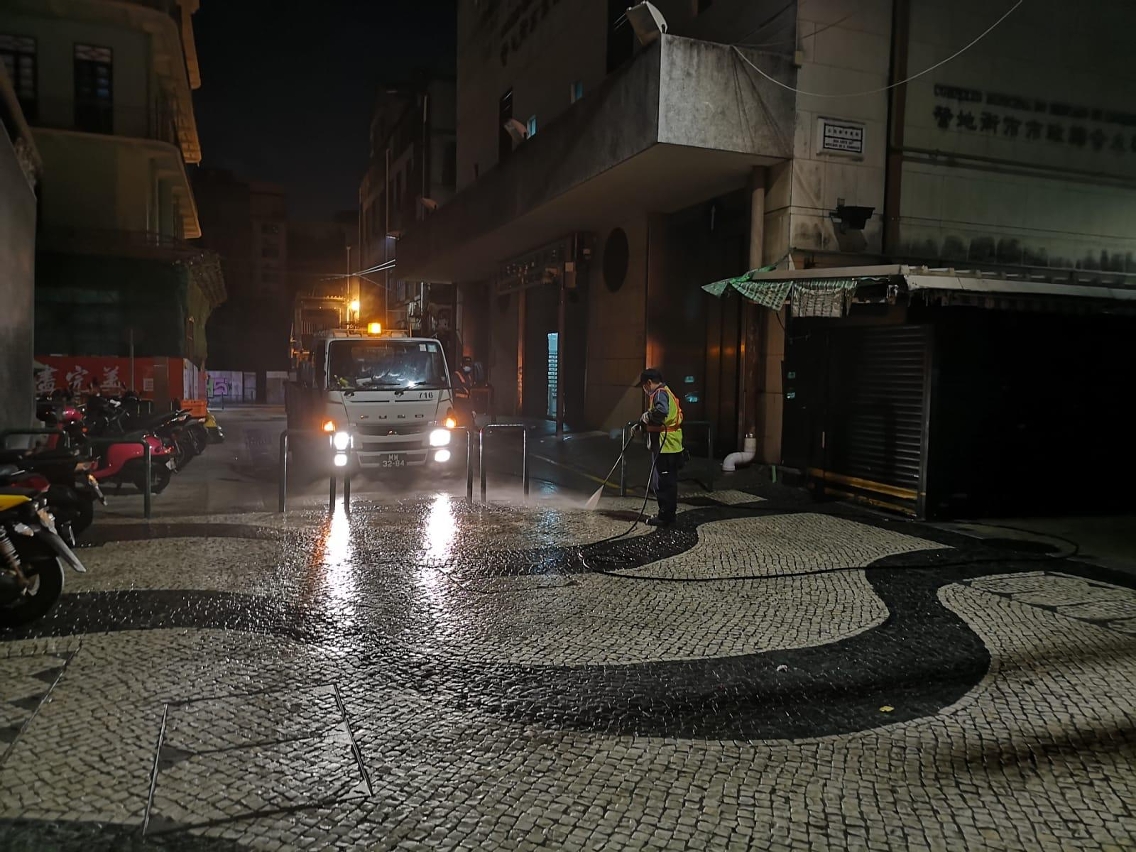 市政署除以稀釋的漂白水清洗小販區、街市及澳門批發市場周邊的公共街道,同時亦加派了人員對場內的設施設備進行清抹及消毒工作,並呼籲小販保持小販區內的環境衛生,切勿胡亂棄置垃圾,以確保相關場所衛生供市民使用。