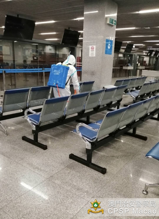 為配合防疫工作,減低感染風險,治安警察局持續關注轄下設施的衛生情況,加強關閘出入境事務站、珠澳跨境工業區出入境事務站、路氹城出入境事務站、於2月3日至7日提供有限度服務的氹仔北安出入境事務大樓及各對外設施等人流密集點的消毒工作,同時呼籲市民於外出時,請佩戴口罩,保障個人及公共衛生。有關本局服務的詳情可參閱本局微信公眾號、「治安警察局社區警務」Facebook專頁及新聞稿 https://www.gov.mo/zh-hant/notices/316238/。