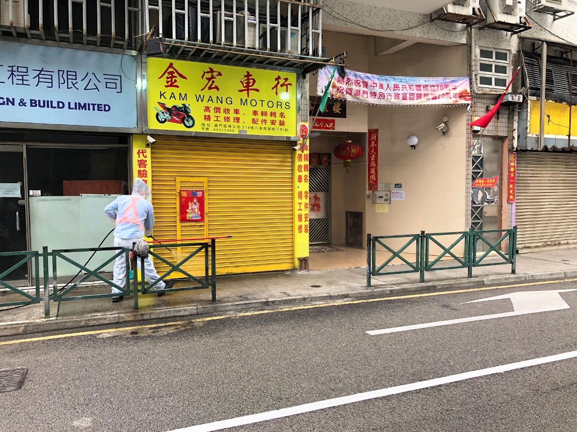 因應新型冠狀病毒肺炎的最新情況並配合防控工作,市政署接報後,今早(2月4日)即時協調清潔專營公司及外判清潔加派人手,於本澳第十例確診病例居所周邊街道、大廈的入口大堂、升降機、走廊及樓梯等公用空間進行大型清潔及消毒工作,盡力減低傳染病傳播的條件。