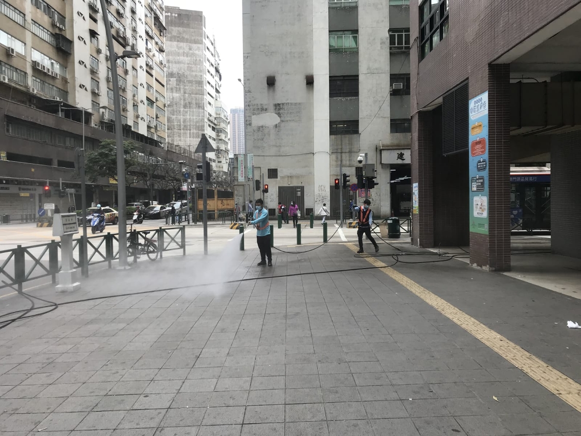 清洗街道以配合防疫工作