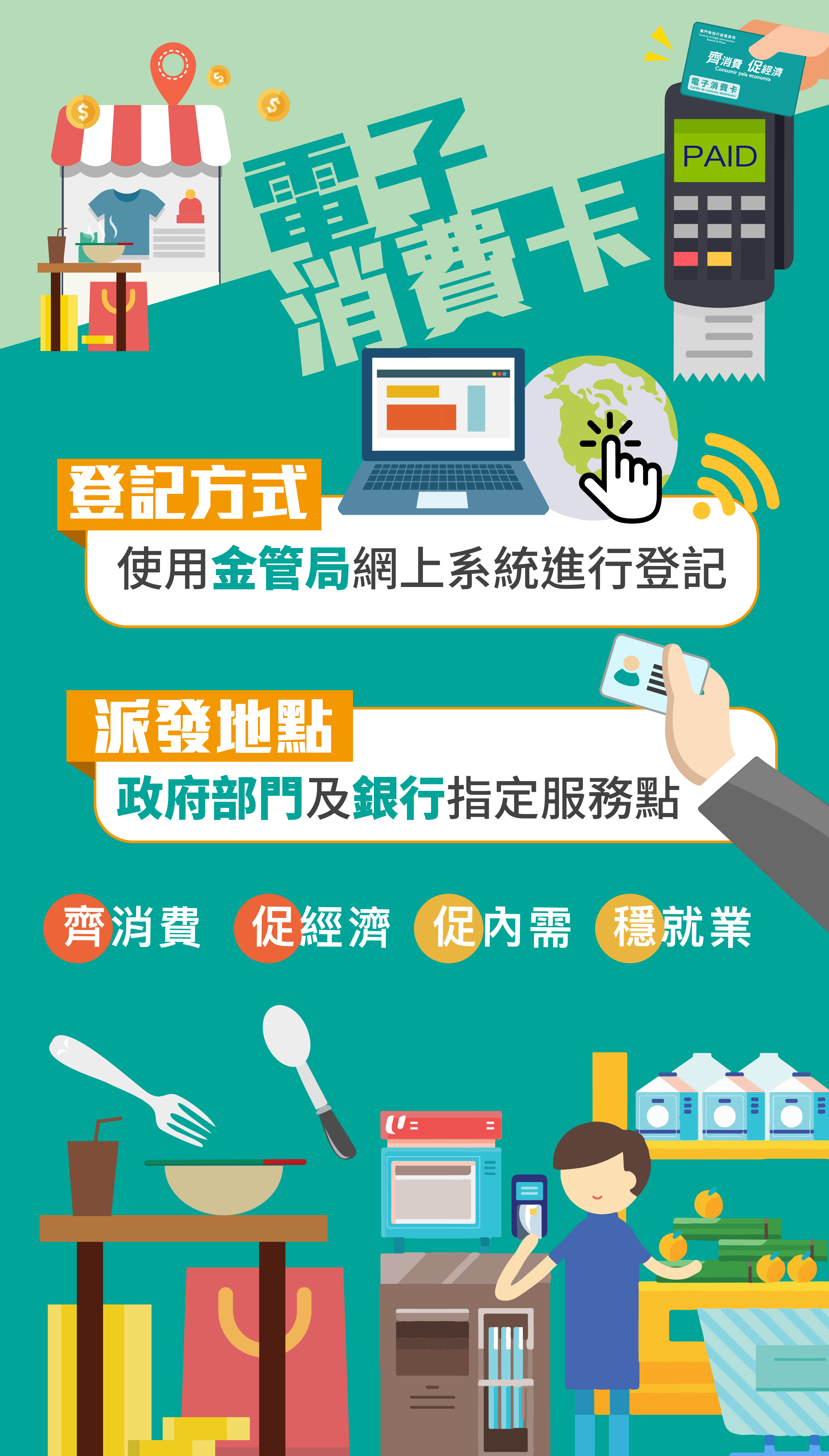 特區政府將向澳門居民每人發放面值為澳門元3,000元的電子消費卡。消費卡必須在本澳的餐飲、零售、生活百貨等場所消費扣帳,並以3個月為期限。透過電子消費卡推動本地消費,提振內需。