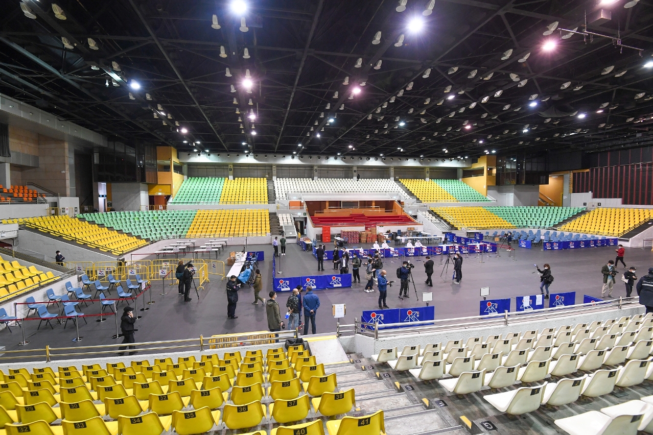 為確保醫學檢查站的安全有序運作,應變協調中心於今(5)日把醫學檢查站遷移至綜藝館。綜藝館面積超過7000平方米,館內座位4000個,可同一時間容納超過1000名受檢者,且人與人間距可保持超過1米。
