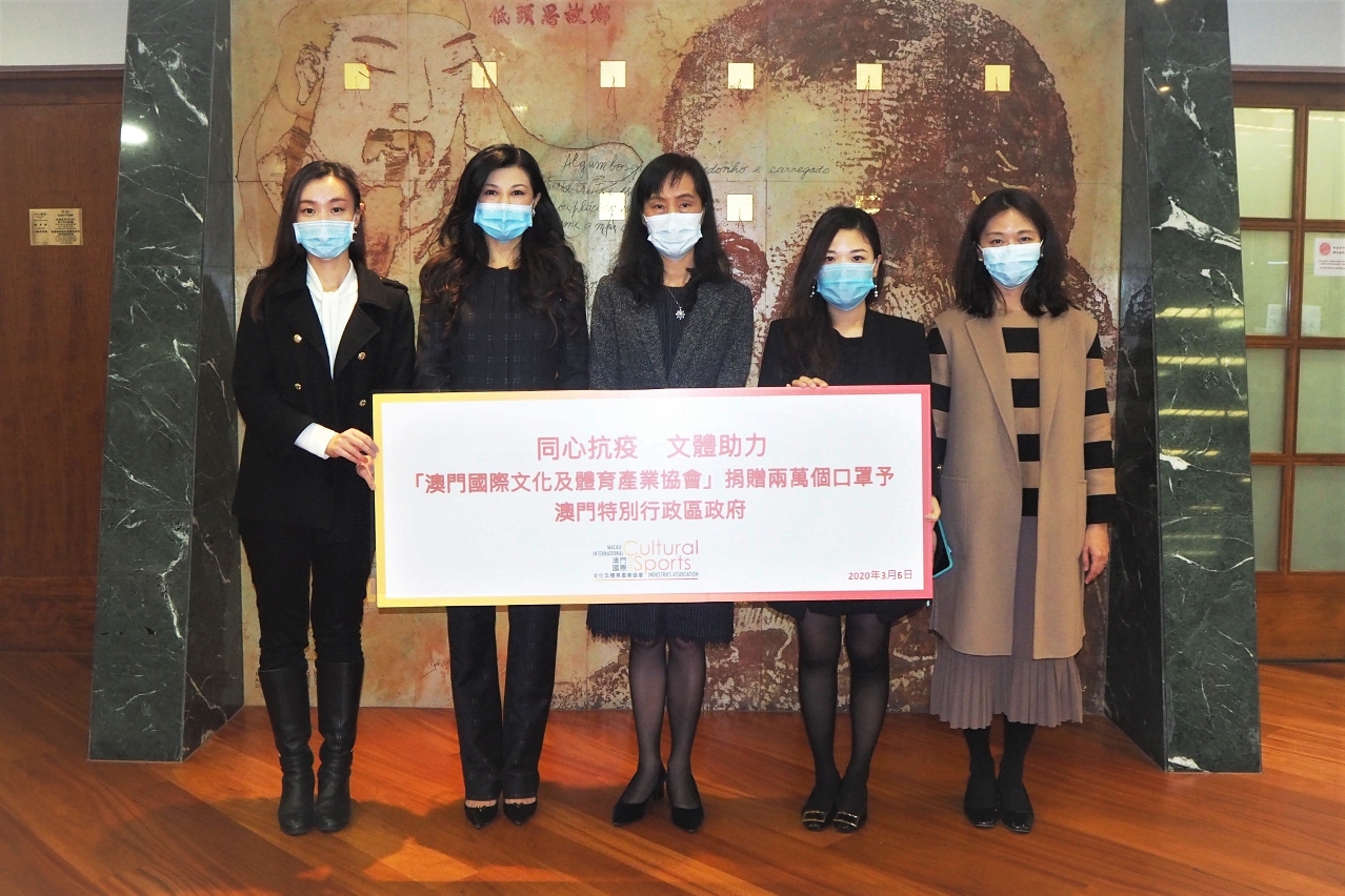 滿貫亞太集團(澳門)一人有限公司經德勤諮詢服務有限公司協調捐出10萬個口罩,澳門海峽女企業家協會捐贈5萬個口罩,澳門國際文化及體育產業協會捐贈2萬個口罩,所有口罩按捐贈者意願送交予衛生局。
