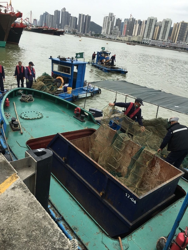 海事及水務局昨(10)日發現內港航道一帶海面有違規放置的漁網,局方立即聯同海關跟進清理工作,保障航行安全。