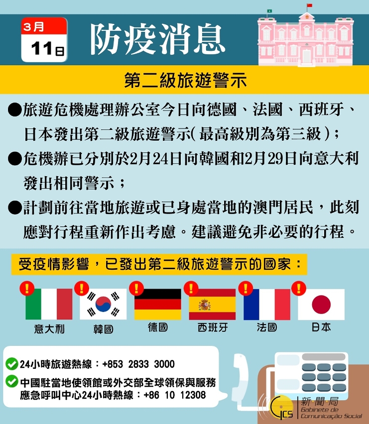 新型冠狀病毒感染應變協調中心查詢熱線統計數字 (3月11日08:00至16:00)