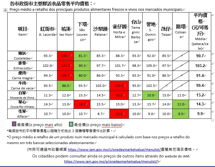 (市民可通過市政署網頁https://www.iam.gov.mo/c/onedaymarketvalue/menulist/查閱其他項目價格。)