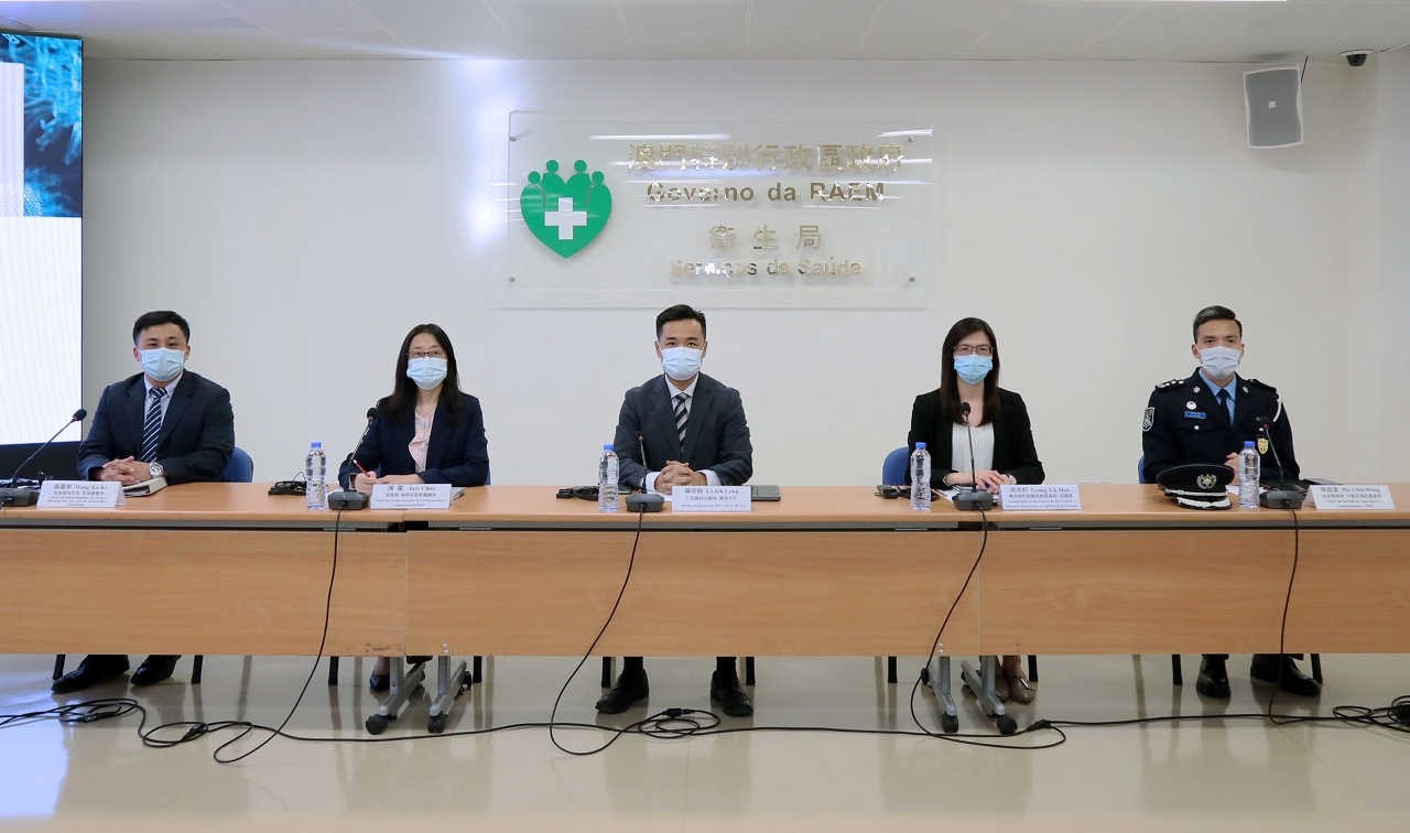 新型冠狀病毒感染應變協調中心(下稱應變協調中心)於今(15)日舉行例行記者會,仁伯爵綜合醫院羅奕龍醫務主任、教育暨青年局教育廳黃嘉祺廳長、旅遊局執照及監察廳陳露廳長、治安警察局行動及通訊處馬超雄處長、疾病預防控制中心傳染病防制暨疾病監測部梁亦好協調員共同會見傳媒。