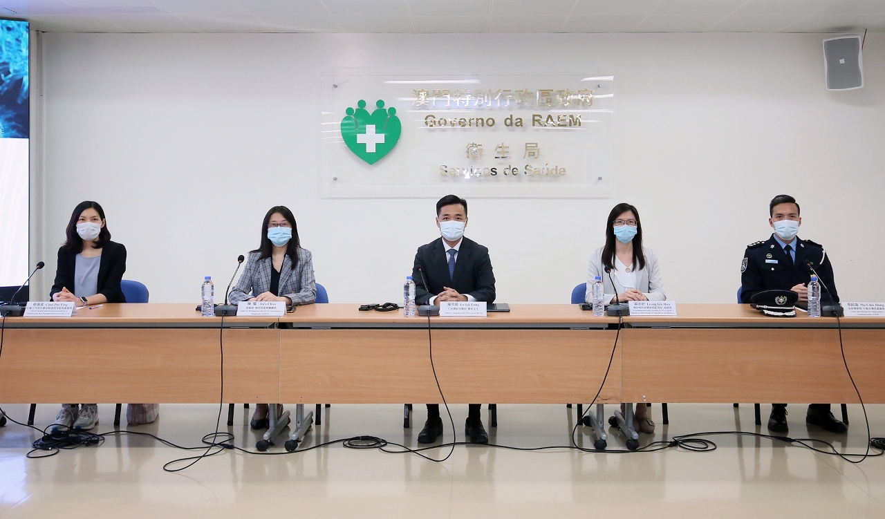 新型冠狀病毒感染應變協調中心(下稱應變協調中心)於今(17)日舉行例行記者會,仁伯爵綜合醫院羅奕龍醫務主任、旅遊局執照及監察廳陳露廳長、治安警察局行動及通訊處馬超雄處長、社會工作局社會設施准照及監察處蔡佩盈處長、疾病預防控制中心傳染病防制暨疾病監測部梁亦好協調員共同會見傳媒。