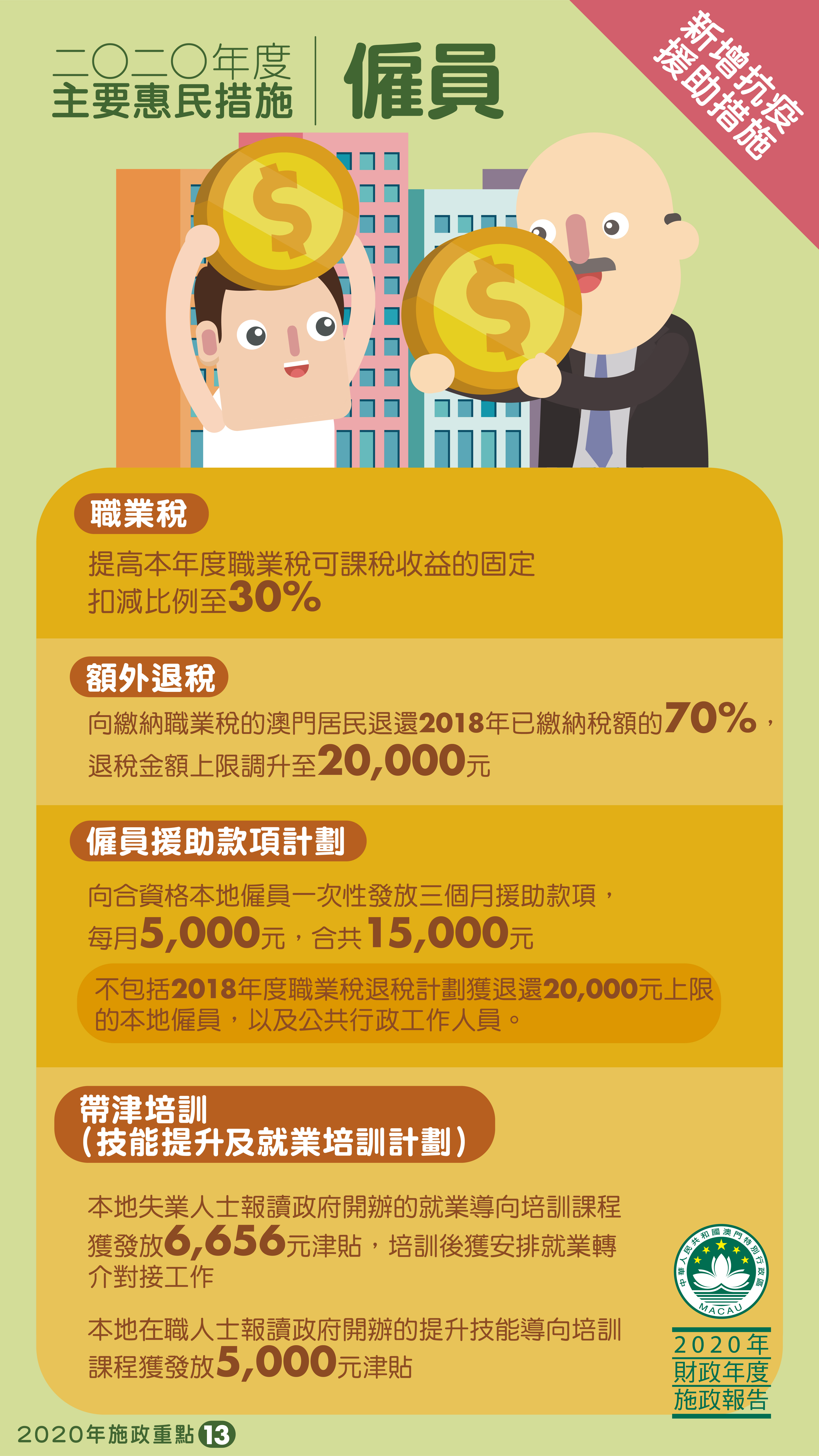 【圖文包】2020年度主要惠民措施:僱員(新增抗疫援助措施)