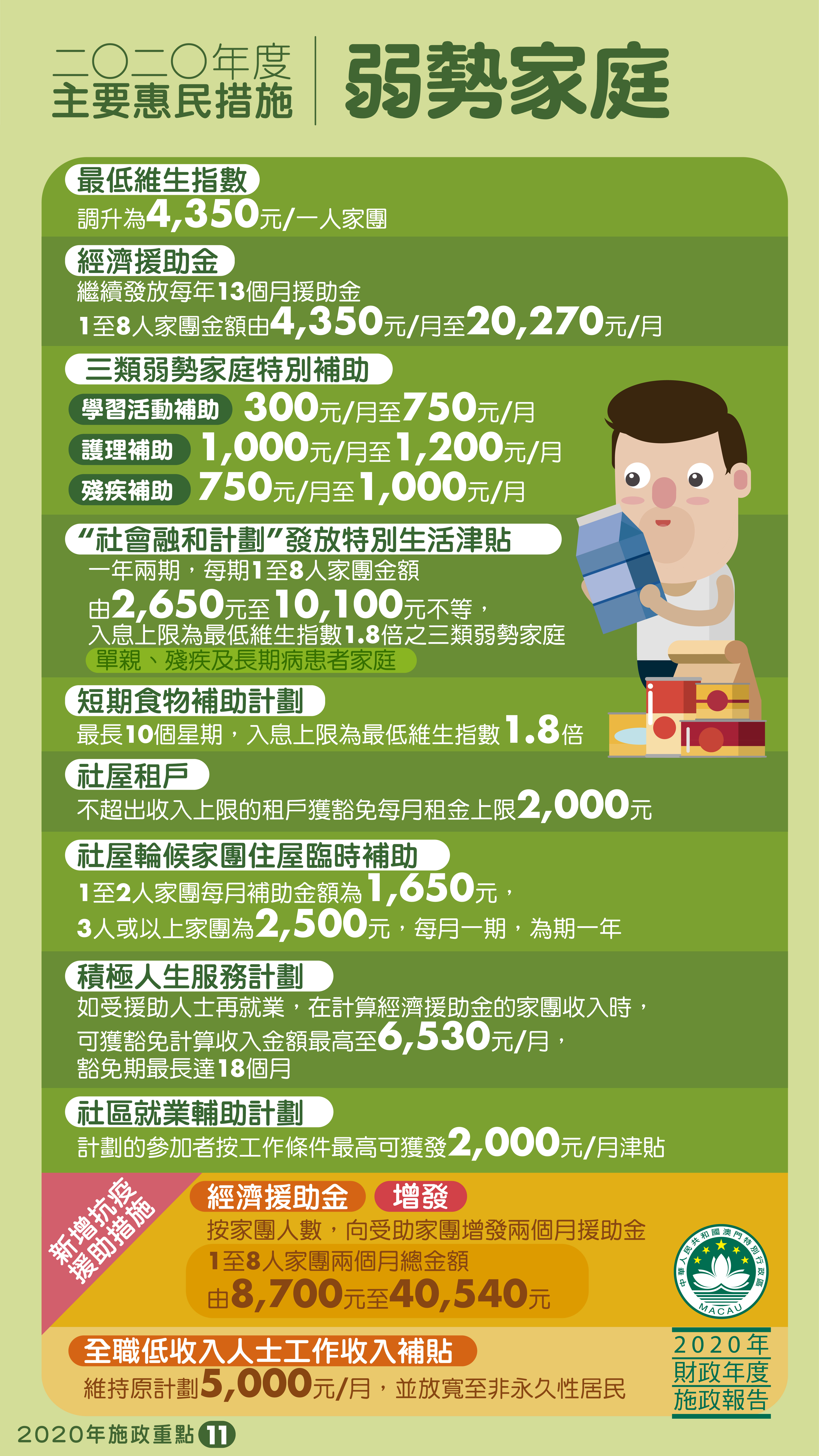 【圖文包】2020年度主要惠民措施:弱勢家庭