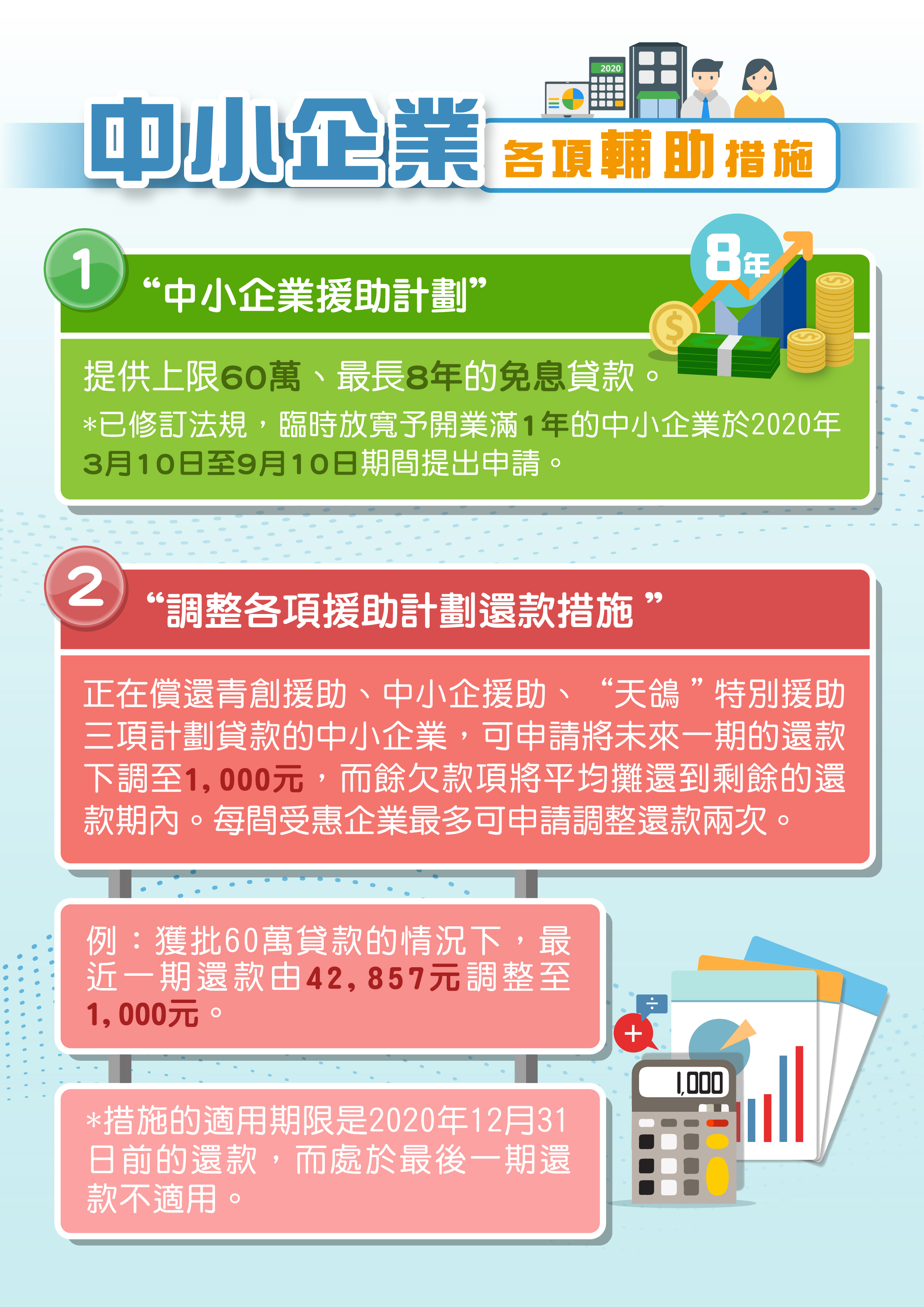 繼續實施“調整還款措施”,緩解中小企經營壓力