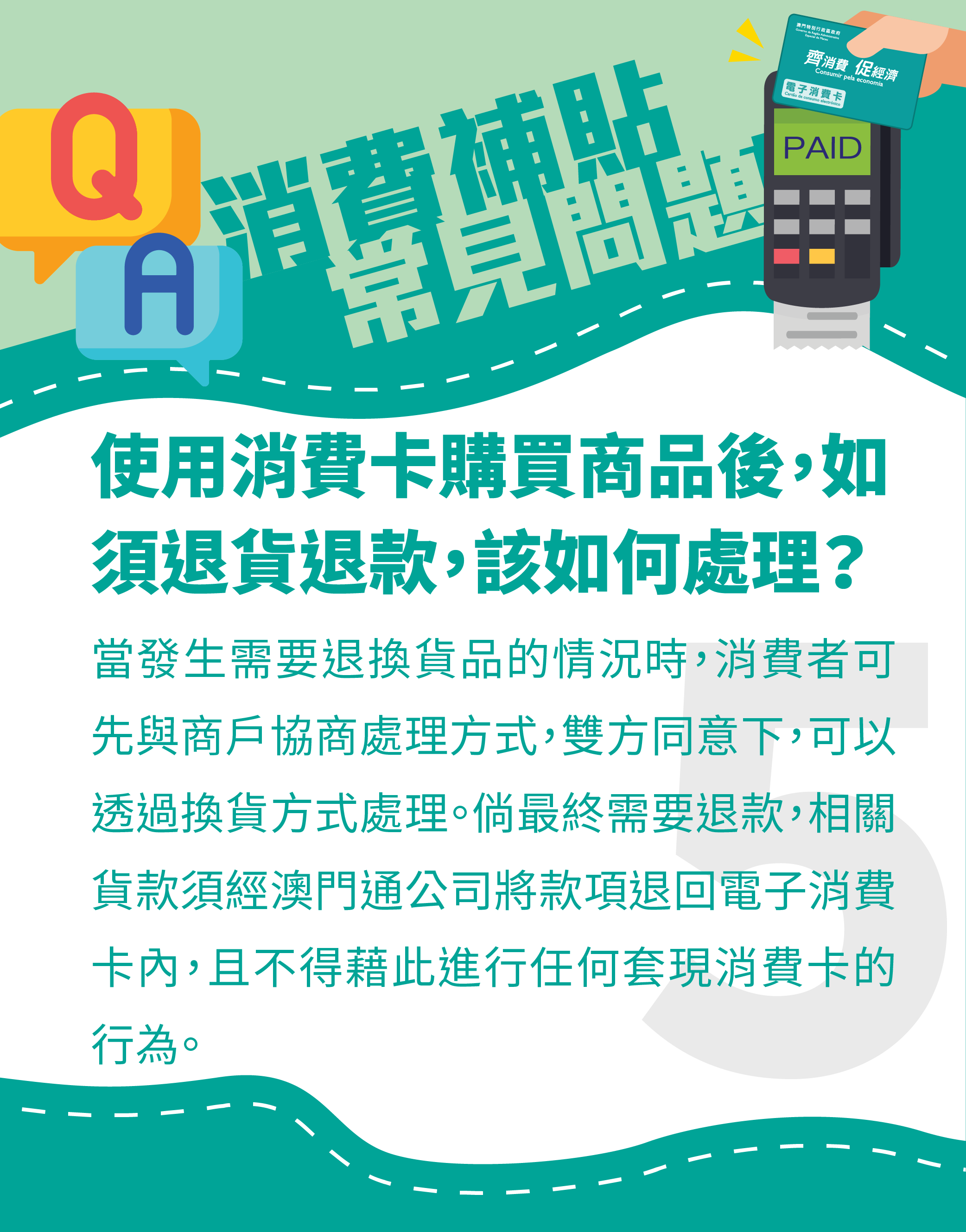5. 使用消費卡購買商品後,如須退貨退款,該如何處理?