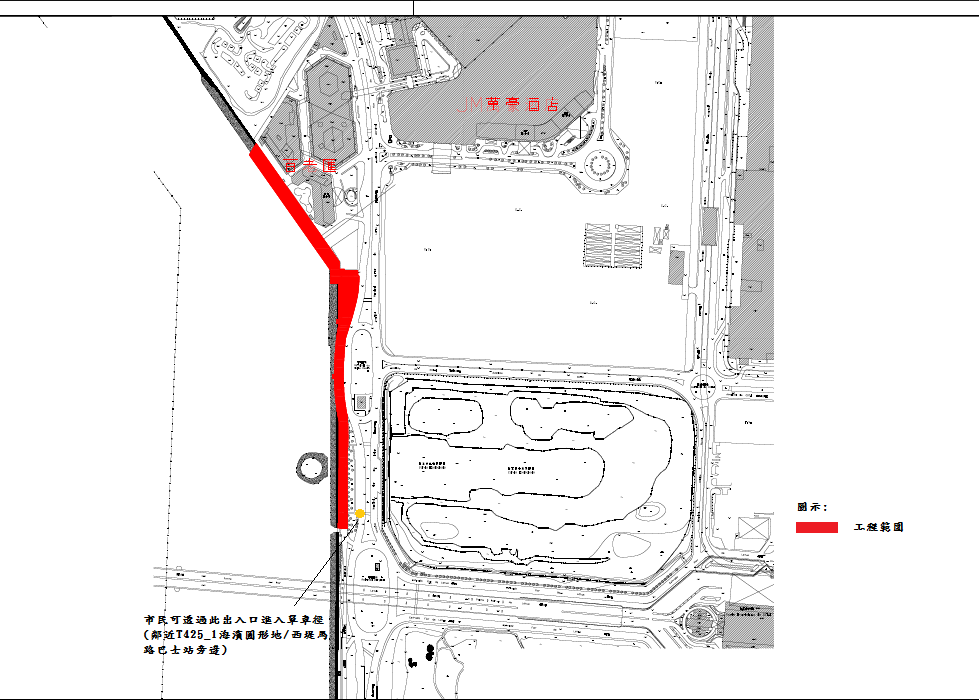 為配合工程施工,由即日起封閉鄰近西堤圓形地至海濱圓形地一段單車徑,市民可透過海濱圓形地/西堤馬路巴士站旁邊的入口進入單車徑,敬請留意。