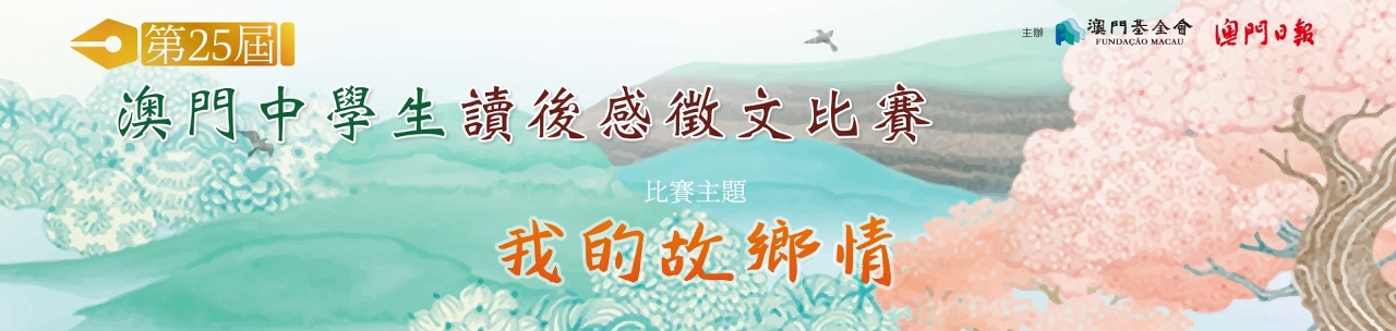 由澳門基金會、澳門日報聯合主辦的第二十五屆“澳門中學生讀後感徵文比賽”,以“我的故鄉情”為主題。本屆報名情況熱烈,共計26間學校的學生參加,參賽作品370份。經高中組評判廖子馨、梯亞、寂然,初中組評判谷雨、陸奧雷、袁紹珊評審,得出獲獎名次。頒獎禮將於6月6日(星期六)在教科文中心舉行。
