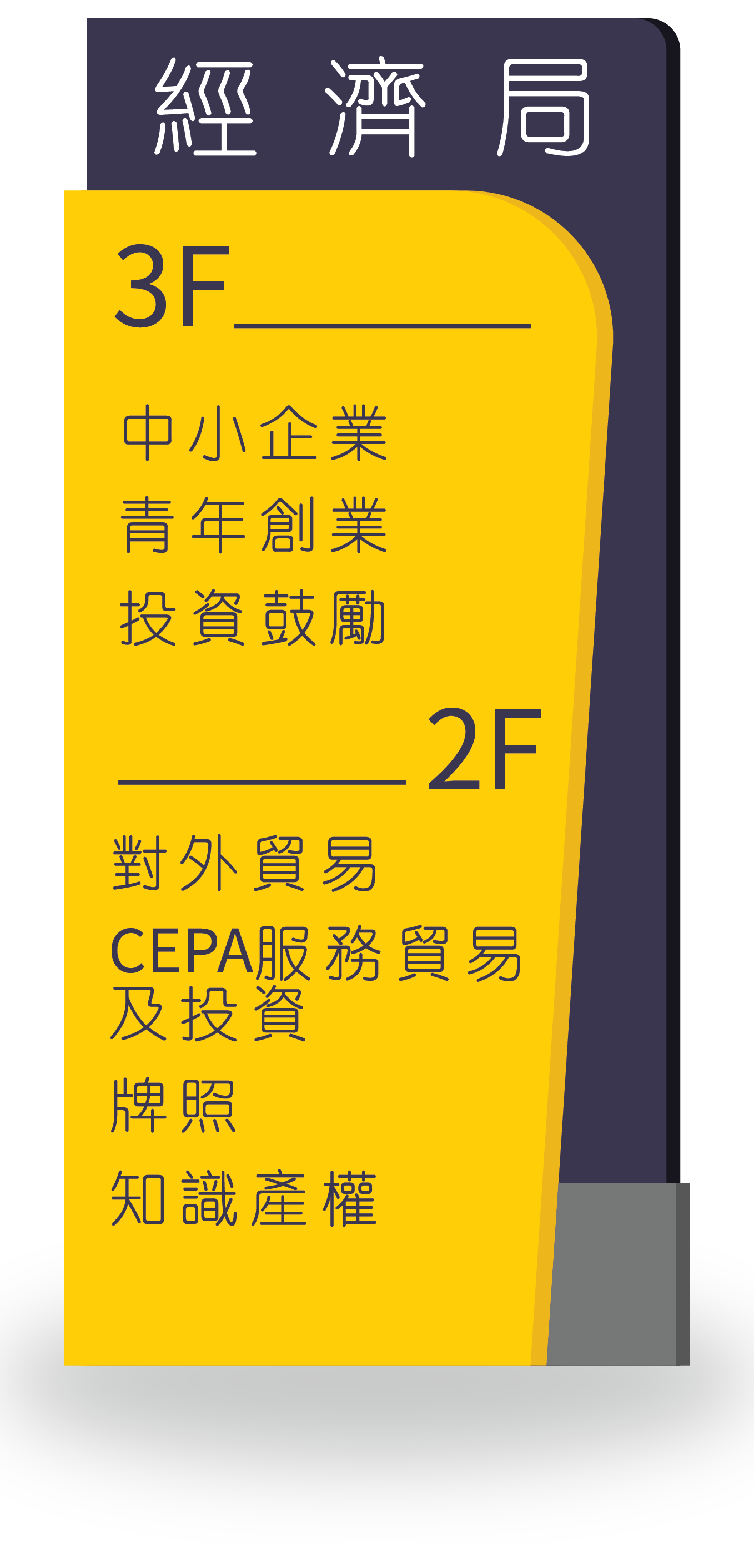 二樓綜合接待中心提供的服務範疇包括:對外貿易、CEPA服務貿易及投資、牌照和知識產權。關於中小企業、青年創業及投資鼓勵相關的措施申請及查詢,維持於同一大廈三樓。