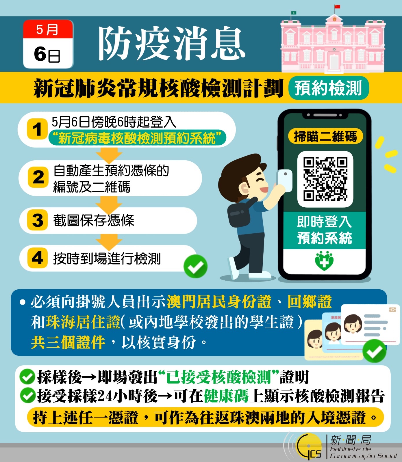 本澳連續28日無新增確診病例 「跨境居住的澳門居民核酸檢測計劃」於5月7日開始