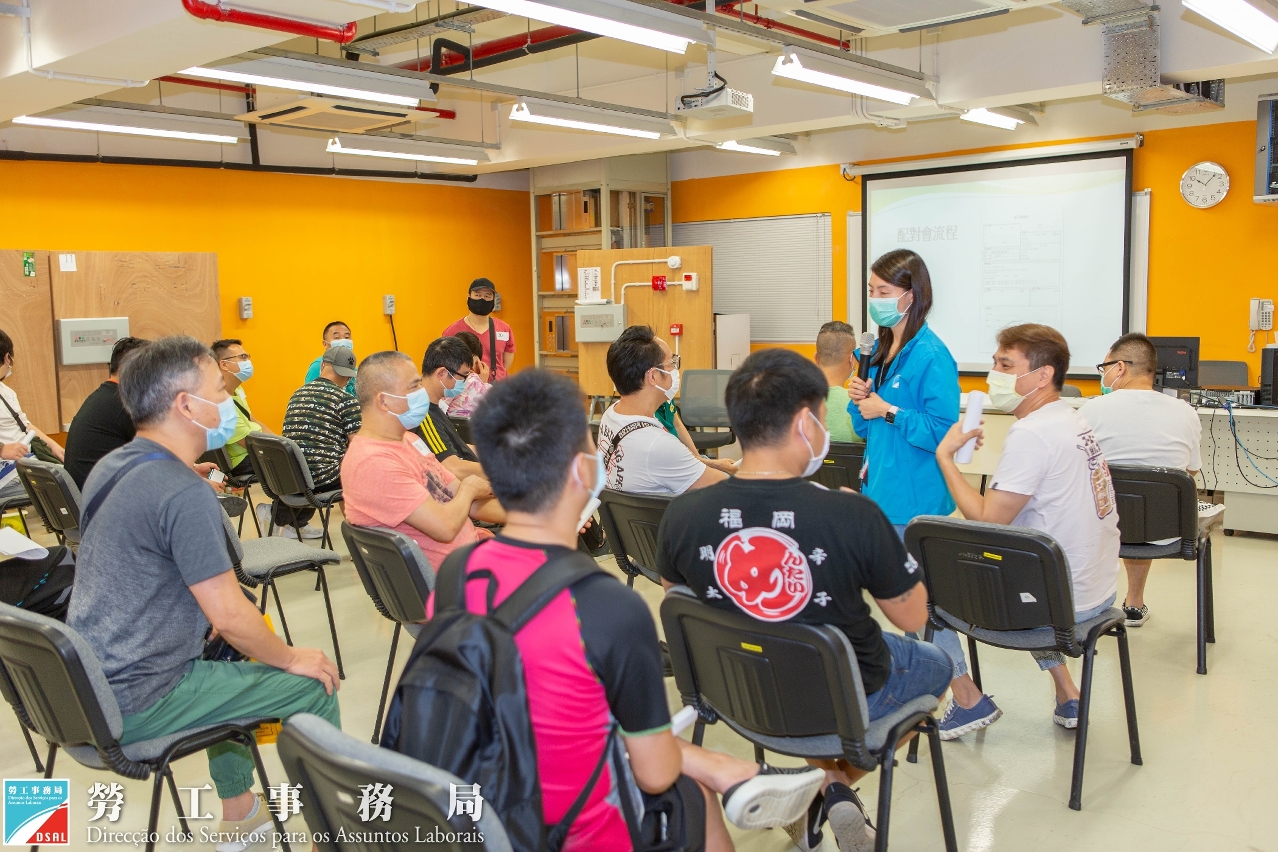 勞工事務局推出的「技能提升及就業培訓計劃」(「帶津培訓」),第一、二期木工培訓課程已於5月4日結業,共34名學員完成培訓,為協助學員及早進入工作崗位,局方於5月6日為該批學員舉辦就業配對會,安排企業進行就業配對及面試,並即場提供面試技巧輔導,提升學員受聘機會。
