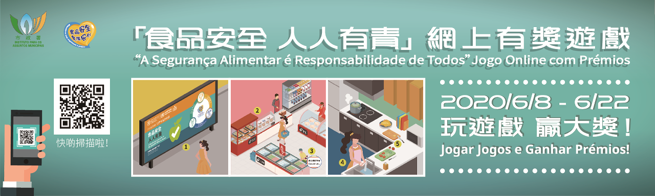 配合「世界食品安全日」,市政署將於六月八日起會推出以「食品安全五要訣ABCDE」為內容的圖文配對網上有獎遊戲,市民只要透過市政署食品安全資訊網www.foodsafety.gov.mo或下載「食安資訊」手機應用程式登入遊戲專頁,正確配對及填妥所需個人資料即可參加抽獎,獎品為超市現金券三百份,遊戲將會到六月二十二日結束,得獎名單將於七月三日公佈,歡迎市民踴躍參加,共同學習正確的食安知識。