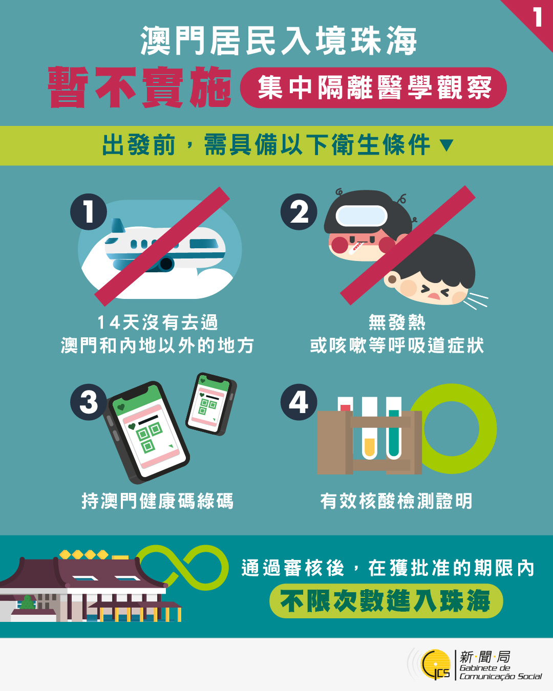澳門居民入境珠海暫不實施集中隔離醫學觀察