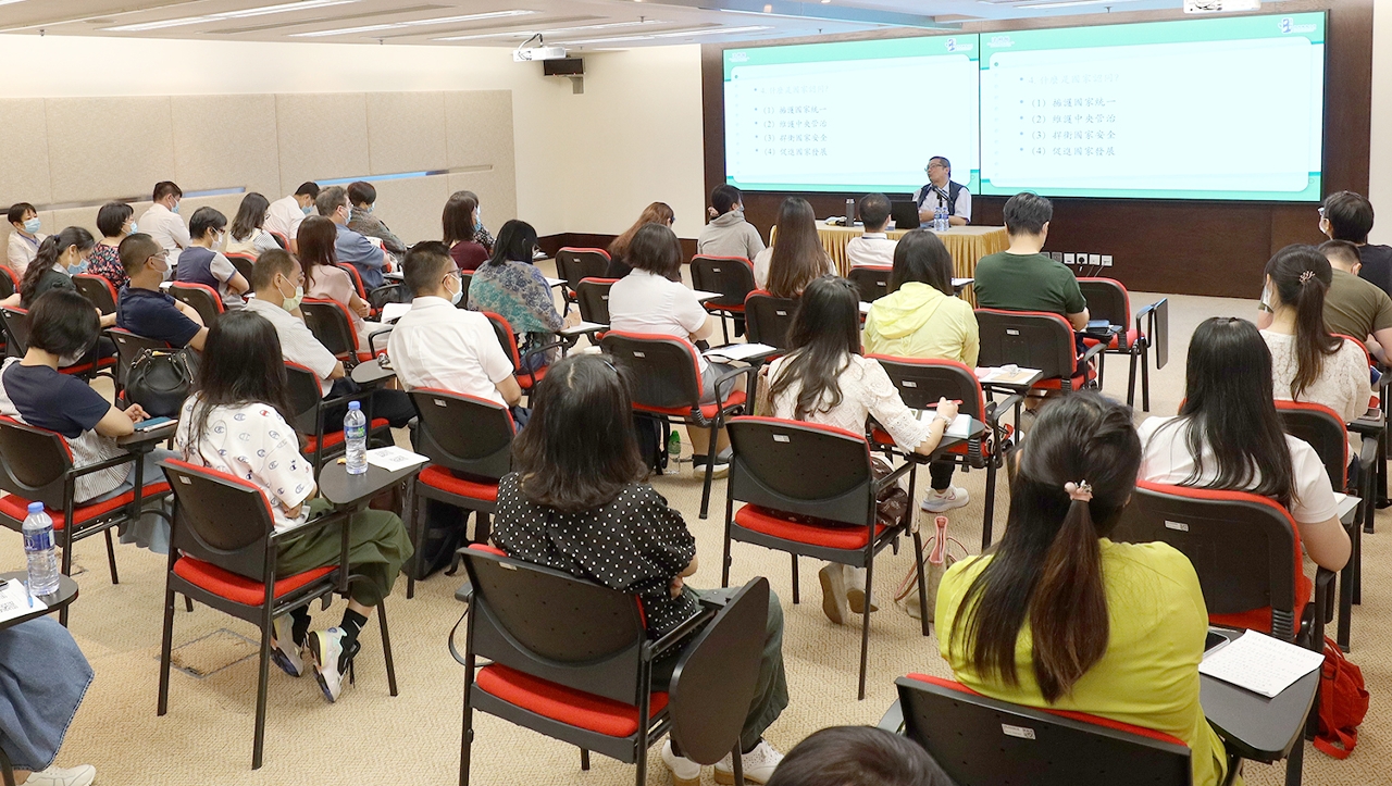 今年首場培訓於6月20日下午在宋玉生廣場中航大廈六樓法務局多功能室舉行,共有六十名來自本澳三十所中學的老師參與。培訓內容主要包括兩部分:第一部分由澳門大學法學院駱偉建教授主講《憲法》與《基本法》、《維護國家安全法》以及國家象徵。駱教授結合法律及社會實況,深入淺出地講解作為澳門特區憲制基礎的《憲法》與《基本法》,彼此間的關聯性以及中央與澳門特區之間的關係等,同時亦論述了《維護國家安全法》的重要性及其立法意義。此外,還向老師介紹了國旗、國徽、國歌的歷史由來、精神內涵及相關法律規定。透過駱教授生動的講解,教師們進一步領會了“一國兩制”的深刻含義,更加充分認識到在澳門新一代中培養國家認同感和歸屬感的必要性和迫切性。第二部分内容由法務局人員負責講解,主要圍繞預防青少年犯罪方面的法律規定,尤其涉及毒品犯罪、網絡犯罪、性犯罪、校園欺凌、刑事歸責年齡等方面的內容,旨在讓教師了解青少年犯罪的類型、性質及所須承擔的刑責,從而引起學校及教師的高度重視,加強對學生的法制教育,以防患於未然。