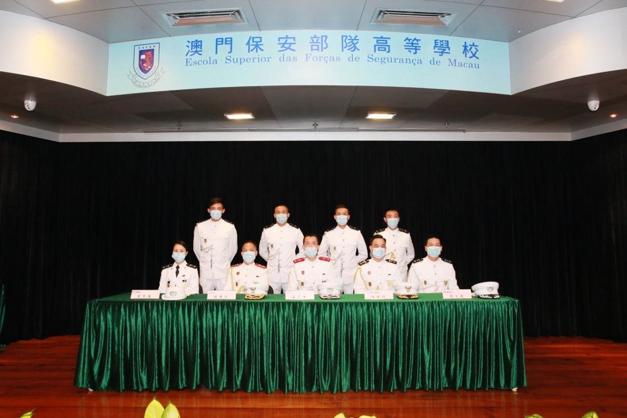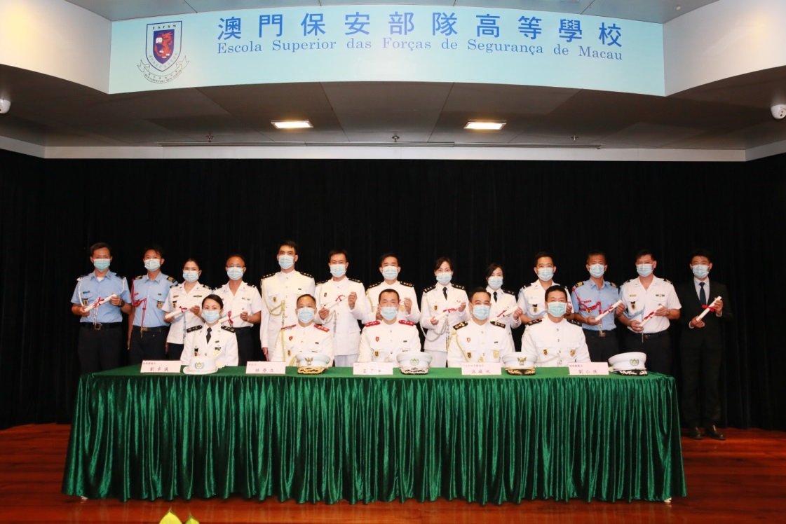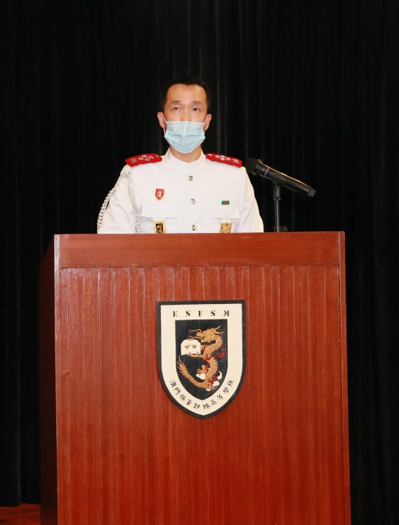 另外,下午3時正,在保安高校禮堂舉行2019/2020年度警官/消防官培訓課程結業典禮暨員工嘉獎狀及行為功績徽章頒發儀式;典禮由校長主持,因疫情關係,典禮按照衛生局的防疫指引進行;校長在致詞中,首先勉勵學生們時刻都要裝備自己,努力提升自身的專業能力,以迎接未來的挑戰,為市民提供優質的服務;並感謝各級人員在過去一年的辛勤付出,保安高校的穩步發展有賴全體人員共同努力。