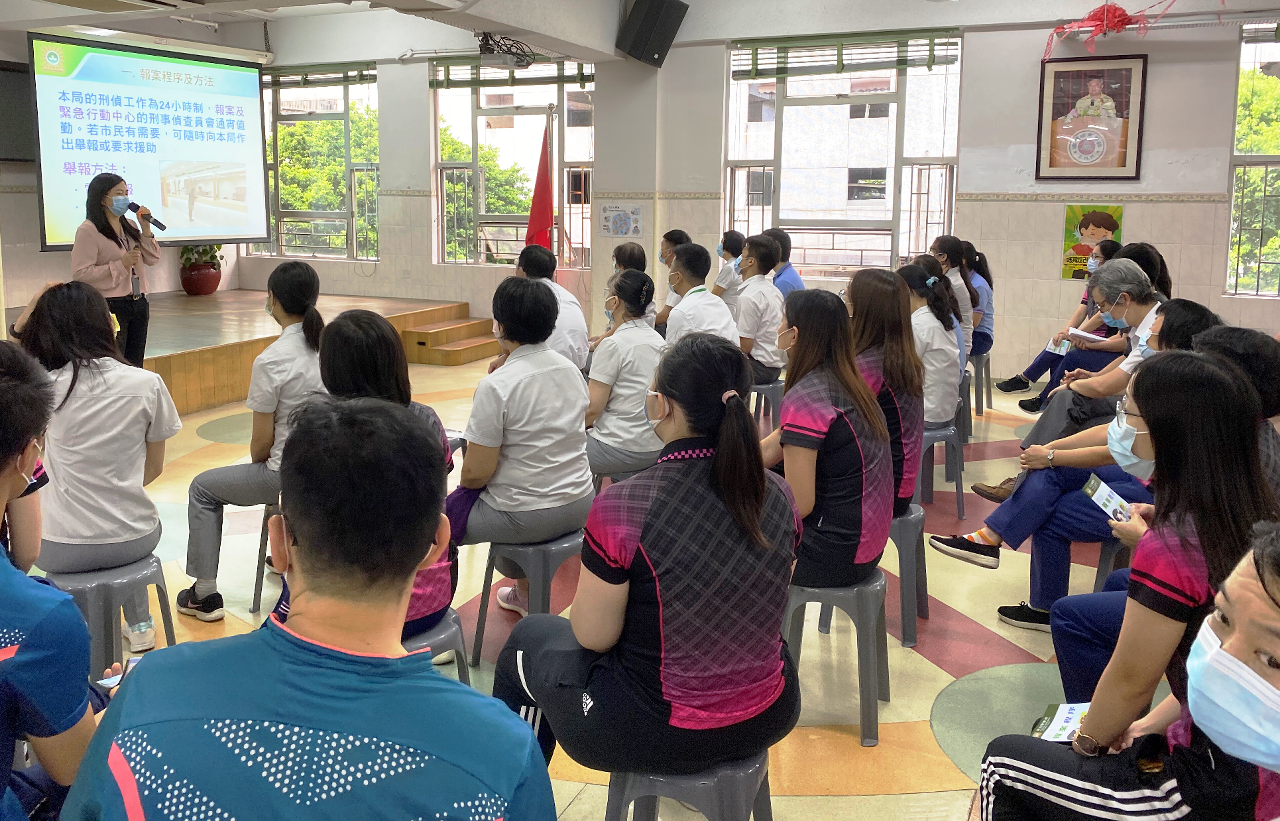 為了加強警校合作,增強學校教職員對防範青少年被性侵害的意識,司法警察局持續走進校園舉辦相關專題防罪講座。早前,司警局關注少年組聯同教育暨青年局人員前往多間中小學校合共舉辦了五場“預防性侵及求助方法”專題防罪講座,約600名教職員及駐校輔導員參與。