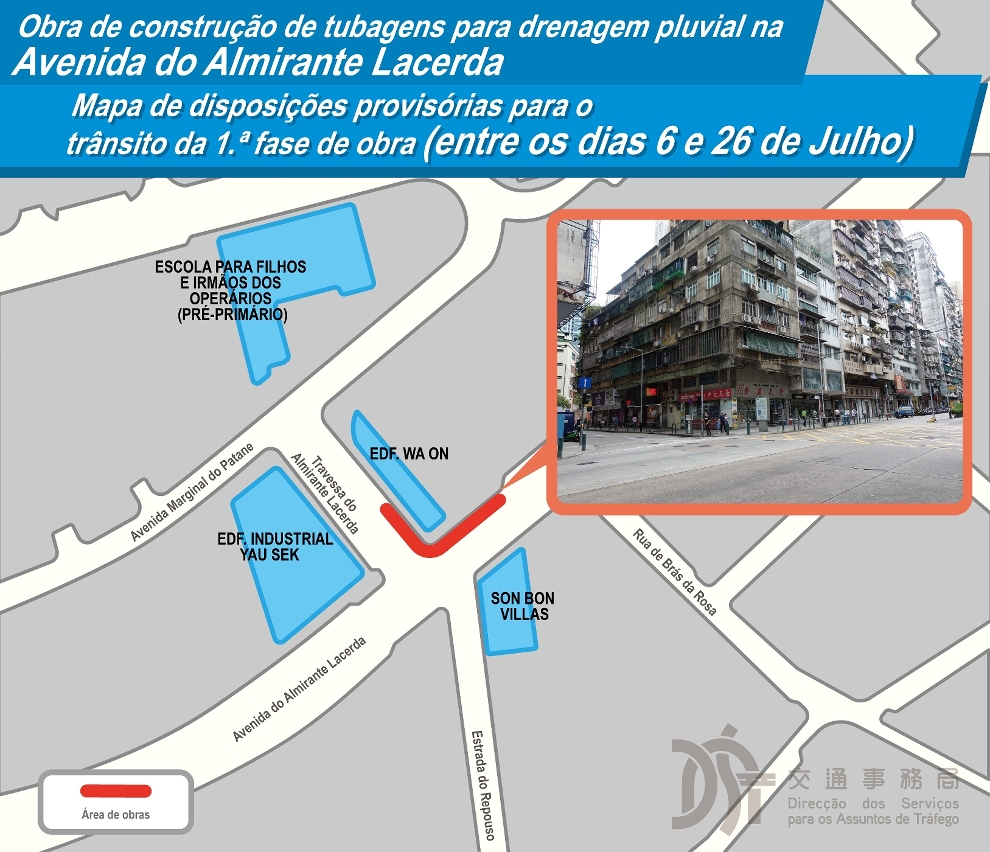 配合第一階段施工,七月六日(周一)至七月二十六日(周六),罅些喇提督大馬路近罅些喇海軍上將巷的路段(由沙梨頭海邊街往高士德大馬路方向)由雙線行車改為臨時單線行車。