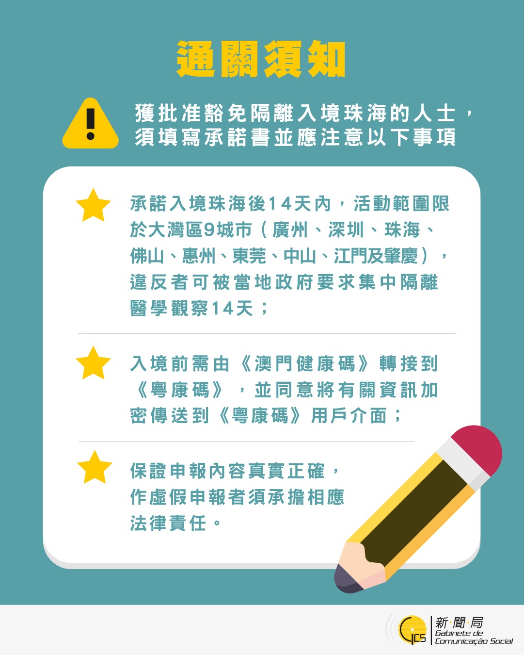 【圖文包】獲批准豁免隔離入境珠海的人士通關須知