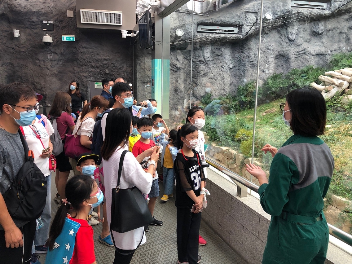 生日會於7月5日舉行,飼養員為“心心”送上透心涼又香甜美味的冰蛋糕,參與的家長及小朋友一起合唱生日歌送上滿滿的祝福,場面熱鬧溫馨。同時,飼養員也介紹大熊貓日常的生活習慣和喜好,令大家更深入了解牠們的生活。