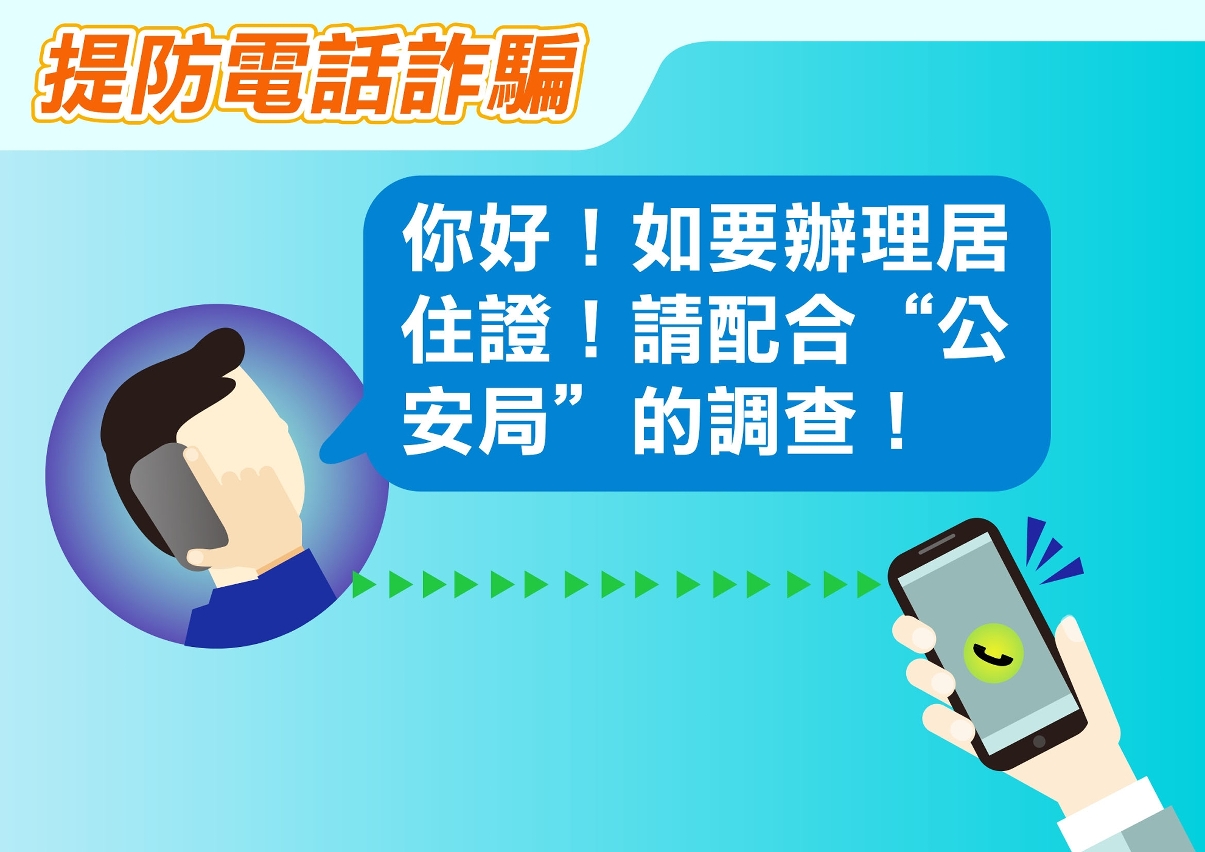 提防詐騙電話:假冒內地公安藉調查居住證行騙