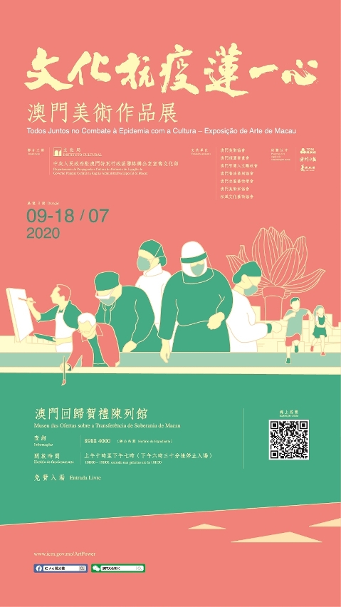 “文化抗疫蓮一心—澳門美術作品展”展期由2020年7月9日至18日,在澳門回歸賀禮陳列館(新口岸冼星海大馬路澳門文化中心旁)展出,開放時間為每日上午10時至下午7時,免費入場。如欲查詢展覽詳情,可於辦公時間內致電28366866。