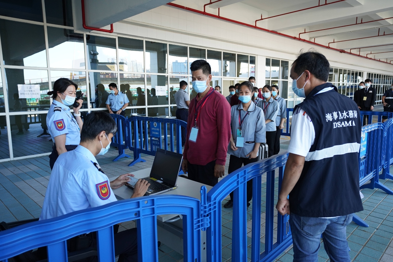演習模擬海關接報後通知消防局、船舶交通管理中心有關火警的情況,碼頭暫停運作,海事局馬上啟動緊急應變程序,通知各使用碼頭單位,鳴響警鐘及進行緊急疏散廣播。同時海關、治安警在船公司和保安人員的協助下將旅客疏散至指定地點,清點旅客人數。消防局派人員和車輛進入碼頭滅火和治理4名在疏散時跌倒受傷和吸入濃煙的旅客。海事局確認碼頭設施狀況正常後,協調各單位在下午約五時恢復碼頭運作;船公司人員協助受影響的旅客辦理離境手續及登船。而演習也模擬了為事件中的旅客補辦入境手續和檢查行李,衛生局人員亦為其量度體溫及核對“健康碼”等。