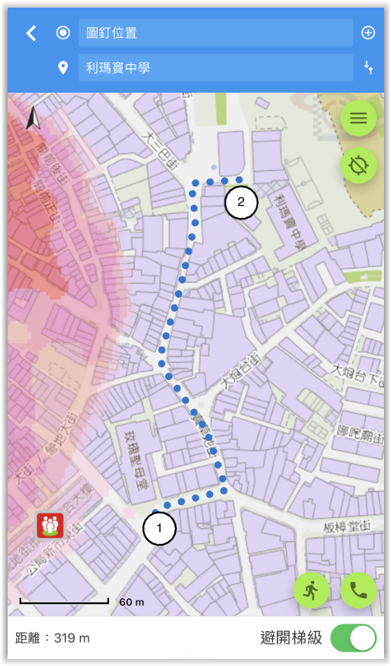 新增規劃步行至最近避險中心路線功能