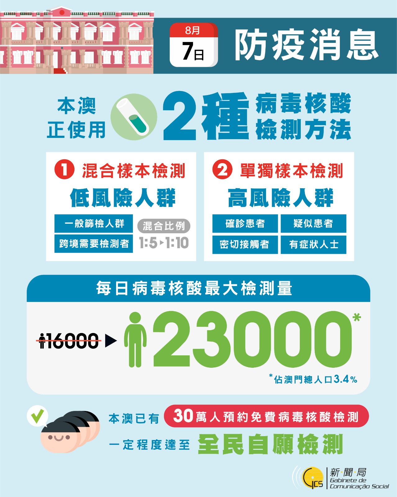 本澳連續131天無本地病例報告 每天最大核酸檢測能力增至2.3萬個