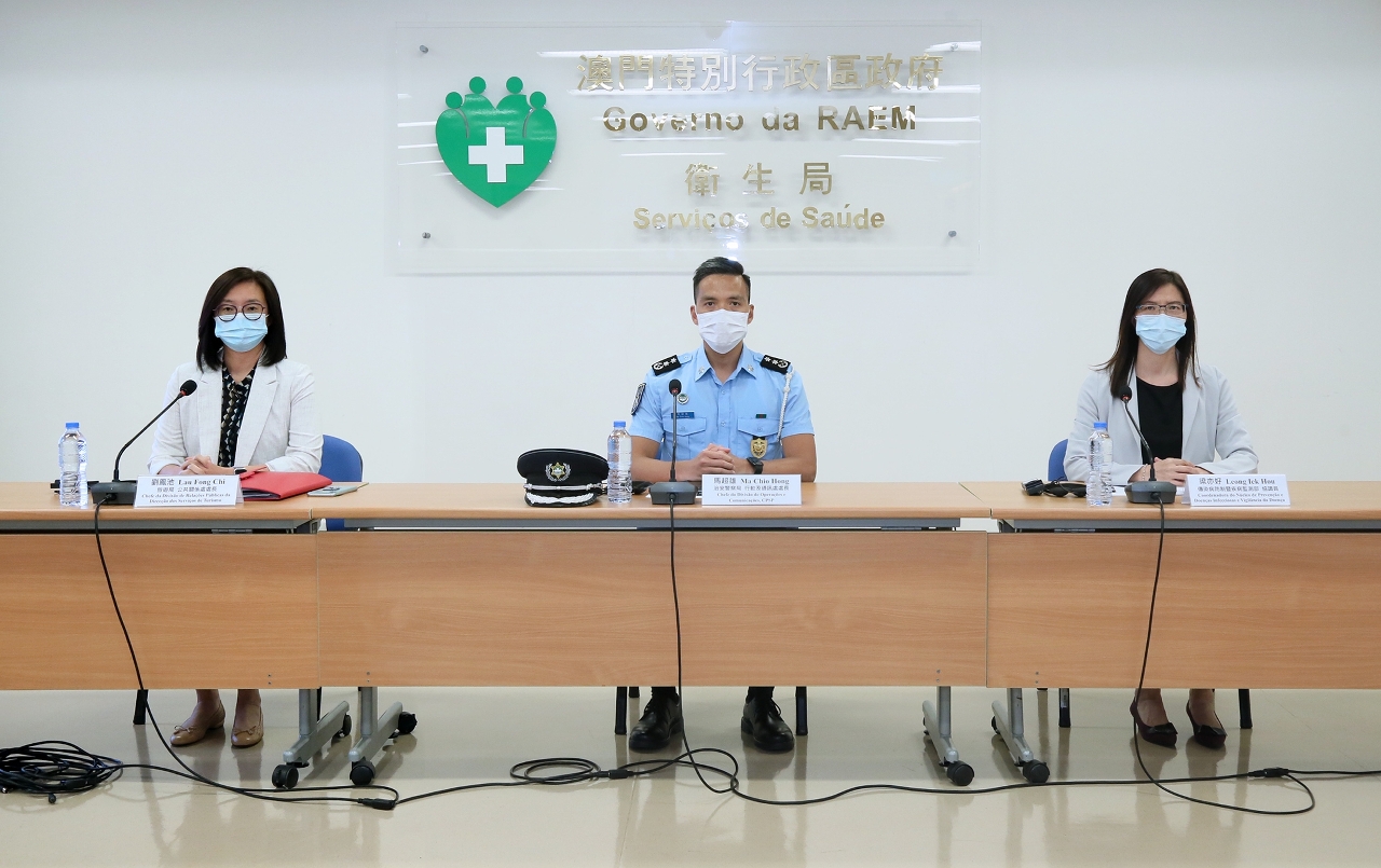 新型冠狀病毒感染應變協調中心(下稱應變協調中心)於今(12)日舉行例行記者會,治安警察局行動及通訊處馬超雄處長、旅遊局公共關係處劉鳳池處長、疾病預防控制中心傳染病防制暨疾病監測部梁亦好協調員共同會見傳媒。