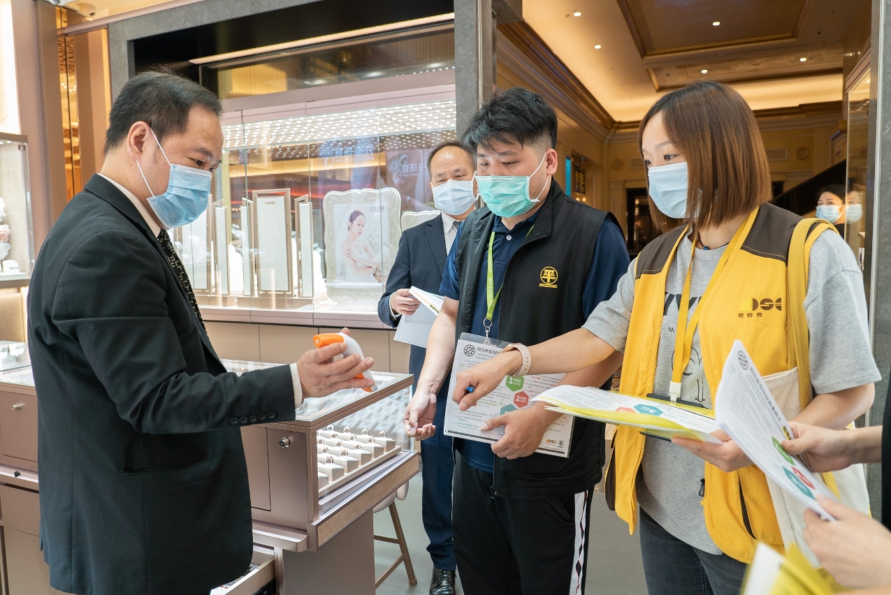 隨著內地居民赴澳門旅遊簽注逐步恢復辦理,預計市面零售場所的人員流動將持續增加。經濟局及消委會近日加強到全澳各旅遊區零售商戶講解防疫指引,先後已到大三巴、關前街、荷蘭園、關閘一帶、氹仔官也街、地堡街、路環市區等旅遊區以及多家路氹城渡假村的購物商場,再次提醒員工按照指引做好防疫措施,確保零售業界落實執行防疫指引,為未來旅客重新來澳做好準備。