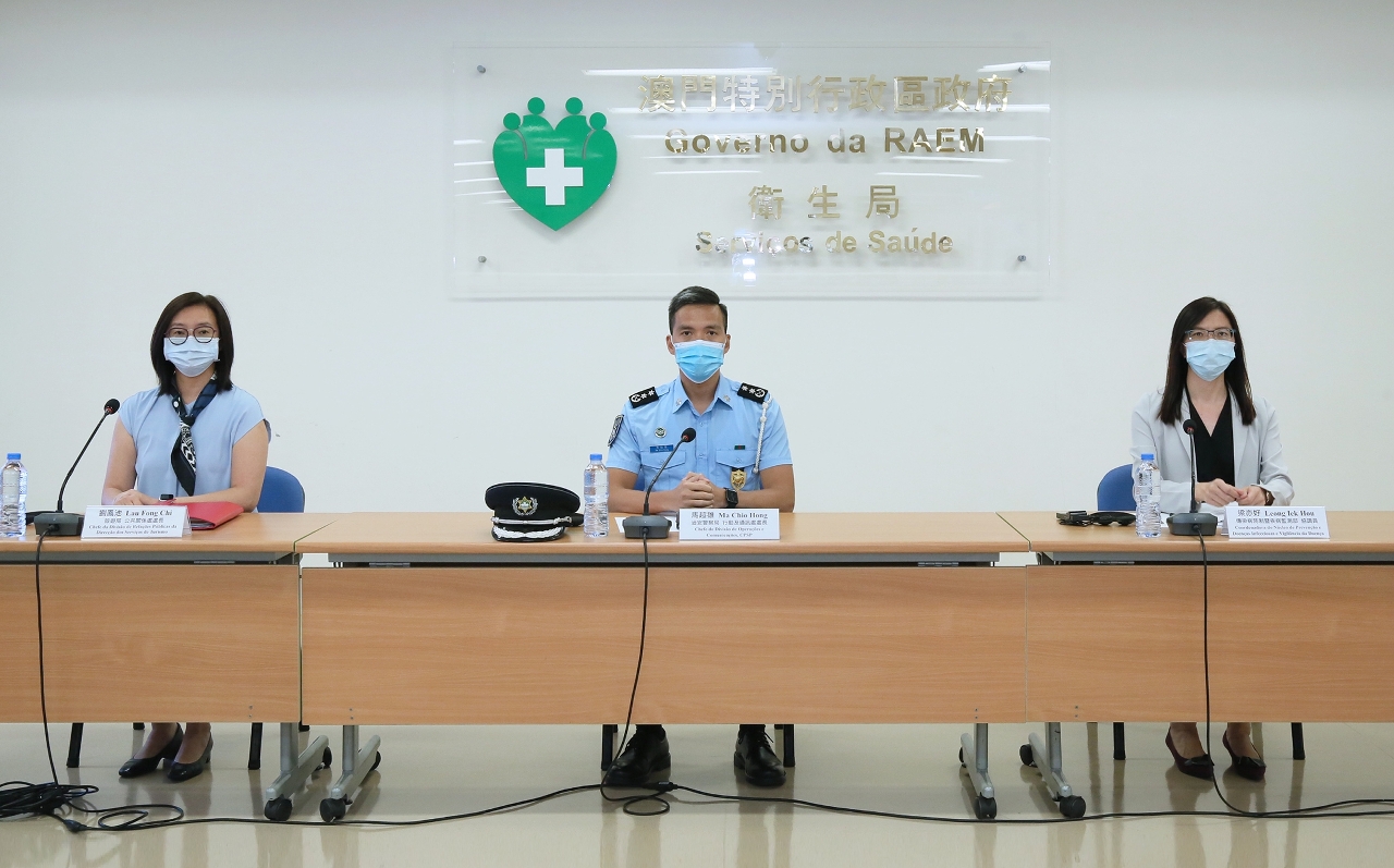 新型冠狀病毒感染應變協調中心(下稱應變協調中心)於今(17)日舉行例行記者會,治安警察局行動及通訊處馬超雄處長、旅遊局公共關係處劉鳳池處長、疾病預防控制中心傳染病防制暨疾病監測部梁亦好協調員共同會見傳媒。