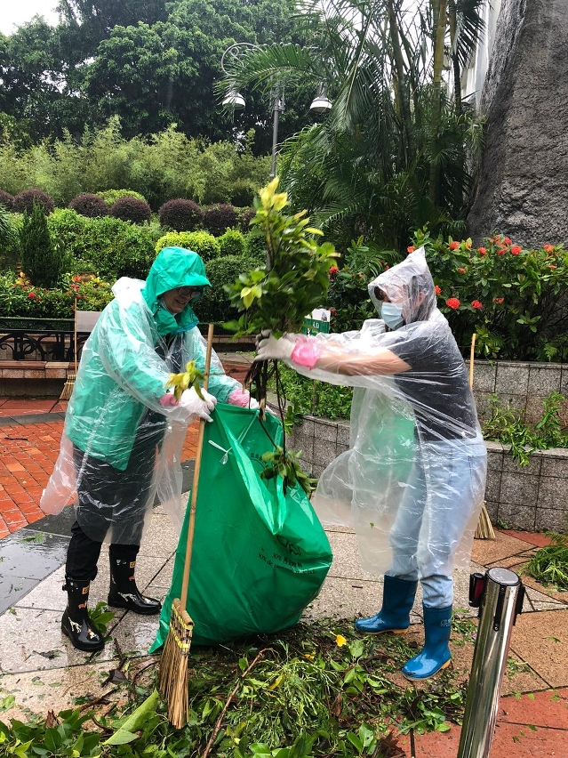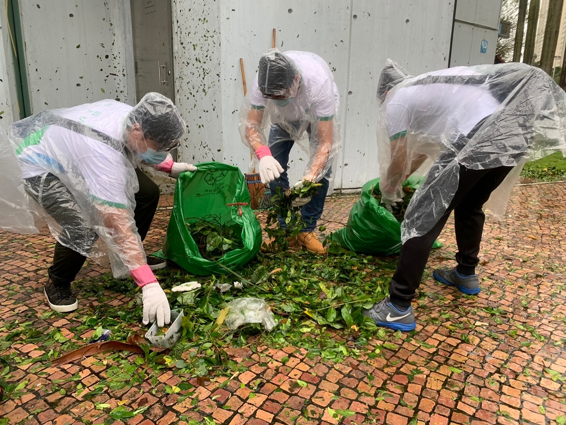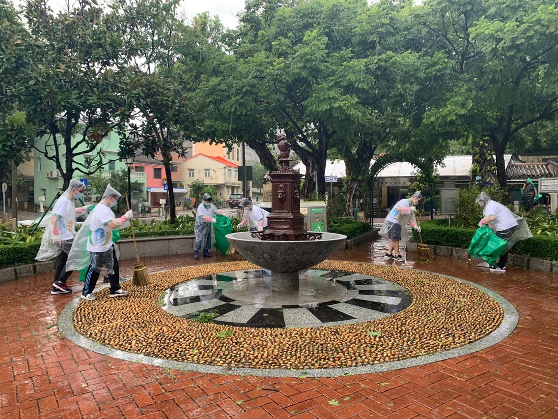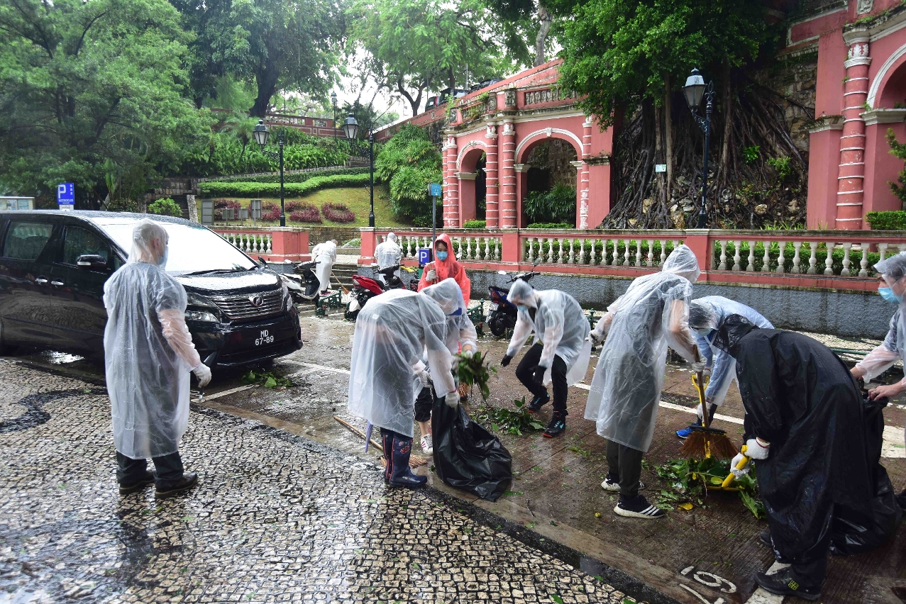 為加快推進風後清理工作,減輕前線人員工作負擔,盡快重新開放市政公園,公職局、法務局、市政署、身分證明局、印務局及退休基金會等行政法務部門組織六隊義工隊,今分別到黑沙環市政公園、氹仔花城公園、中央公園、南灣八角亭、嘉思欄公園、石排灣郊野公園、路環恩尼斯花園等進行清理工作,共同合力,讓有關設施盡快回復原面貌,供市民使用。