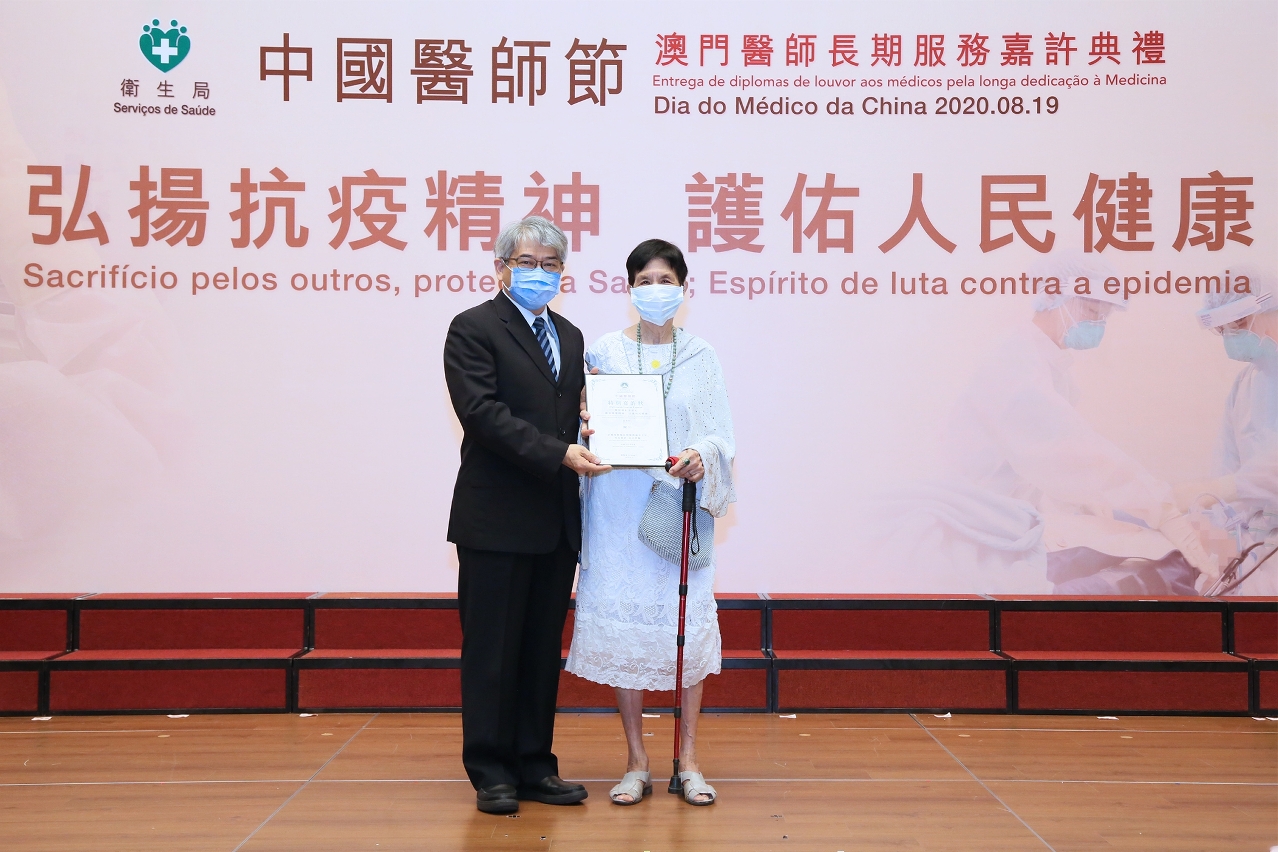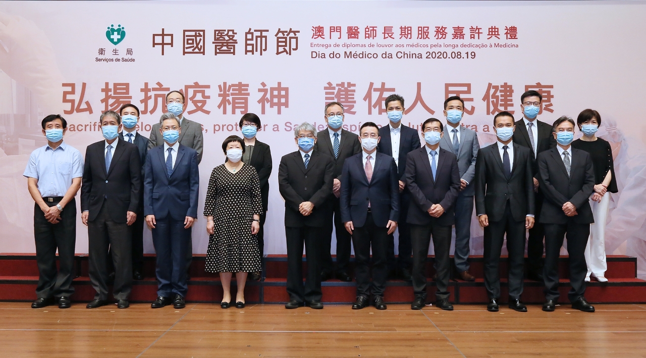 為響應國家將每年8月19日定為「中國醫師節」,以弘揚無私奉獻的專業精神,嘉許長期投身醫療工作的醫師,衛生局今(20日)舉行了「中國醫師節」澳門醫師長期服務嘉許典禮,今年的主題為『弘揚抗疫精神,護佑人民健康』。出席嘉賓包括中央人民政府駐澳門特區聯絡辦公室宣傳文化部劉偉副部長、衛生局李展潤局長、郭昌宇副局長、鄭成業副局長、陳永華代副局長,醫務委員會吳培娟副主席、暨南大學校友會馬有恆會長、銀葵醫院鄭偉倫首席執行總監、醫療事故鑑定委員會柯慶華主席、醫務委員會委員,本澳多間醫療機構、醫務協會代表等。