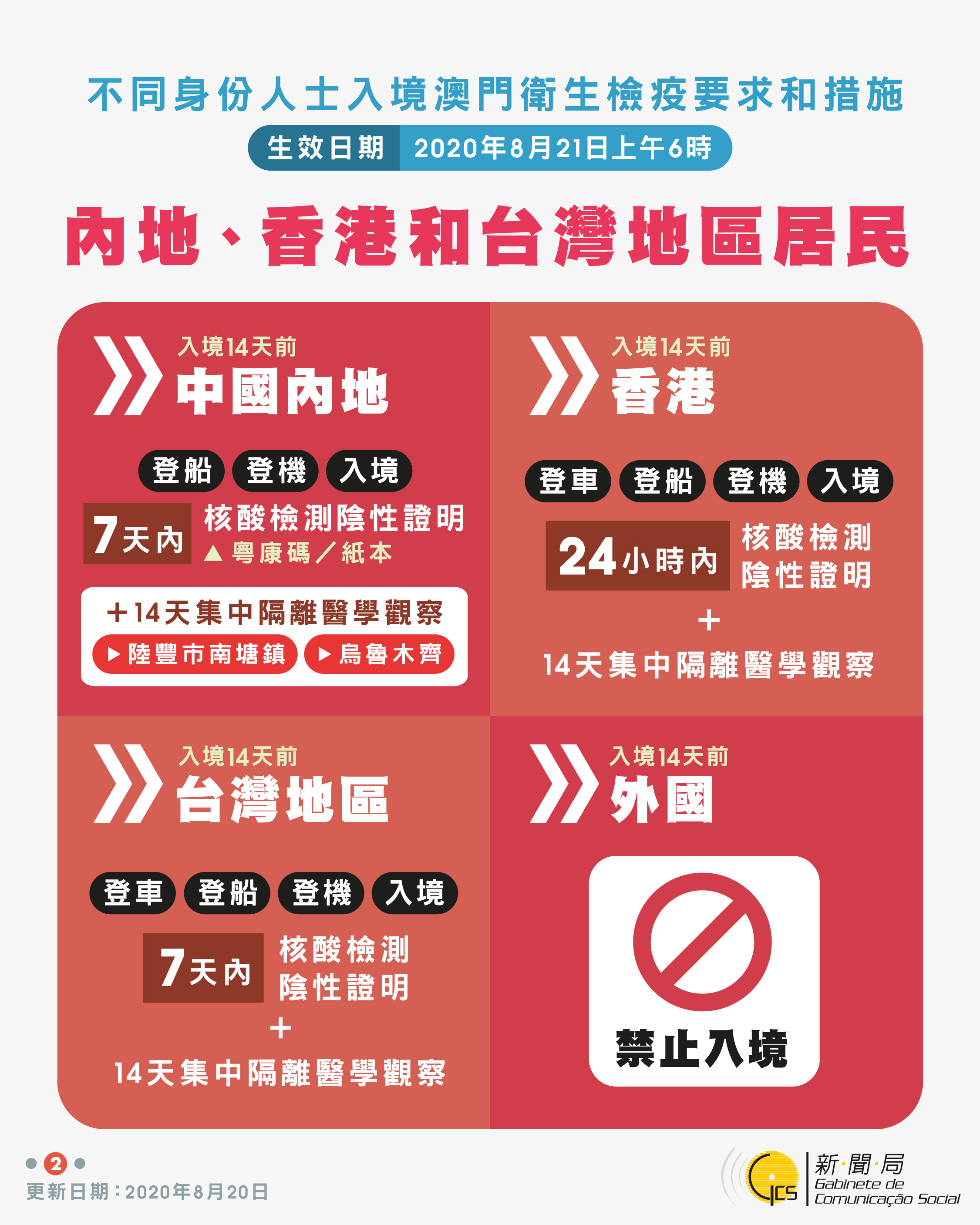 【圖文包】不同身份人士入境澳門衛生檢疫要求和措施