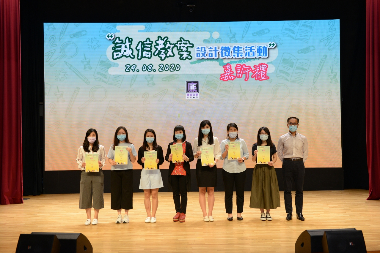 廉政公署誠信教案設計徵集活動嘉許禮於上周六(29日)下午3時假中葡職業技術學校禮堂舉行,向得奬師生頒發奬項。廉政專員陳子勁表示,廉署將持續於校園開展廉潔誠信教育工作,與學校,教師和家長一起,培育誠實、正直和負責任的新一代。