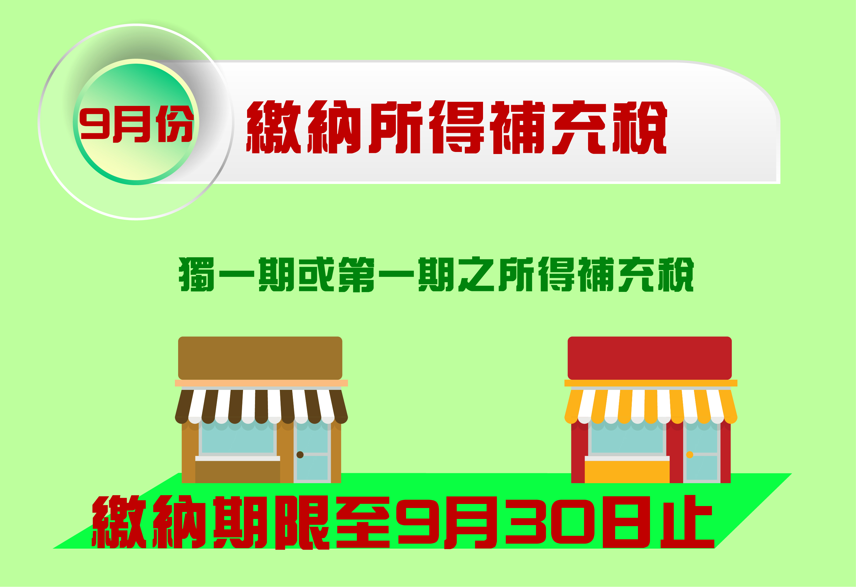財政局提醒納稅人,繳納月份為9月的獨一期或第一期之所得補充稅,繳納期限至9月30日止,分期繳納稅款,若第一期不按規定於九月份內繳納,將加徵過期利息及欠繳稅款百分之三,並引致第二期立即到期。為免增加輪候時間或因逾期繳納而附加之過期利息和罰款,財政局呼籲倘仍未繳納上述所得補充稅之納稅人,請儘快利用財政局提供的繳稅方式繳納所得補充稅,亦可於辦公時間內,到指定銀行櫃位或透過銀行提供電子交易方式,或位於南灣大馬路財政局大樓、龍成大廈、政府綜合服務大樓及離島政府綜合服務中心收納處繳交。
