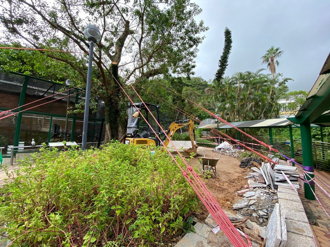 市政署在現場環境安全的情況下,先為樹木架設臨時支撐架,利用吊臂車從旁施力協助固定樹身,同時進行修枝、挖泥及移除部分根系後,順利扶正樹木,並作了臨時支撐、換泥及修枝整形,下階段將繼續進行永久支撐架的建設及擴大樹穴等工序。