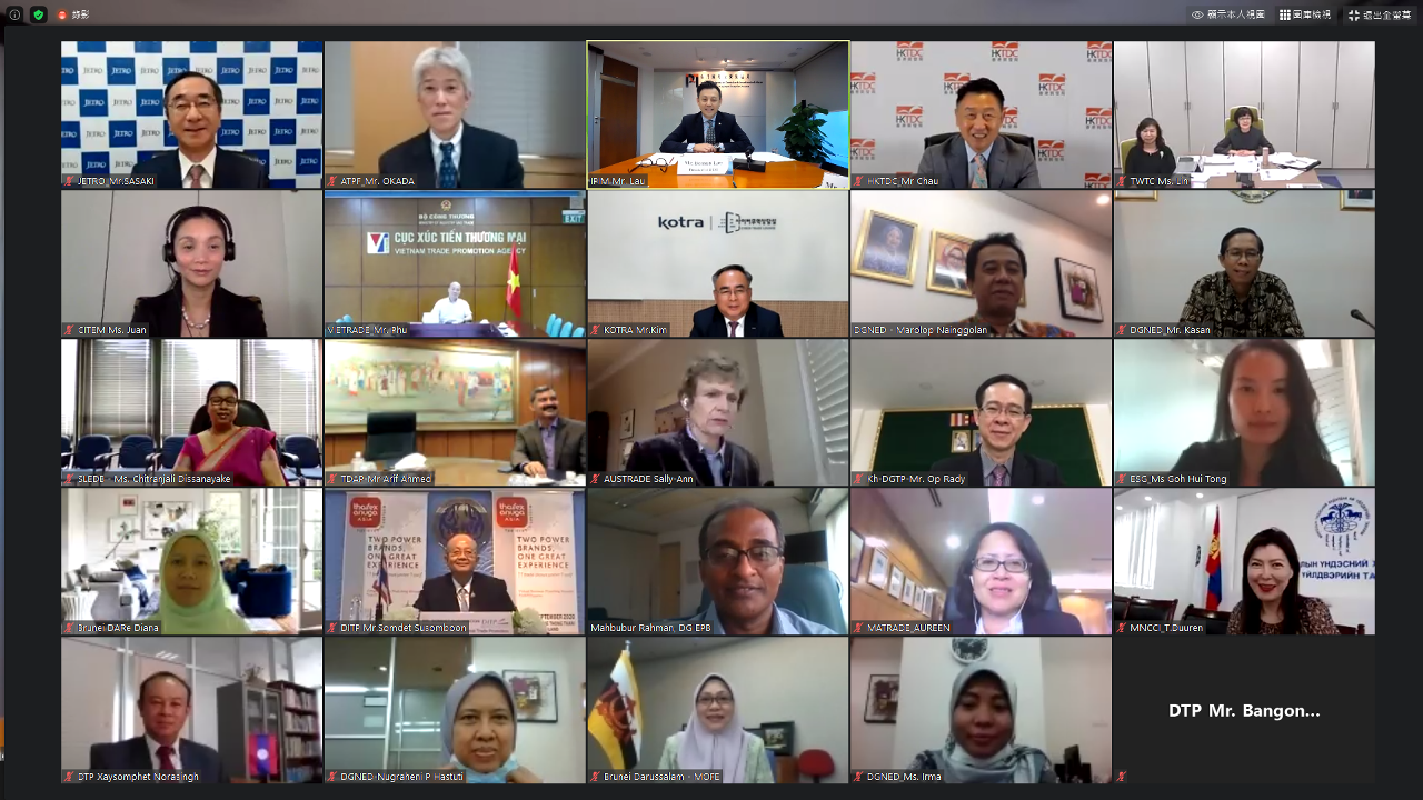今屆會議共有20個亞洲區經濟體貿促機構代表參加,包括中國內地、澳洲、菲律賓、印尼、泰國、老撾、孟加拉、新加坡、柬埔寨、日本、韓國、馬來西亞、蒙古、文萊、斯里蘭卡、巴基斯坦、越南等國家及台港澳地區。其中,中國國際貿易促進委員會副會長張少剛、香港貿易發展局副總裁周啟良等參與是次線上會議。