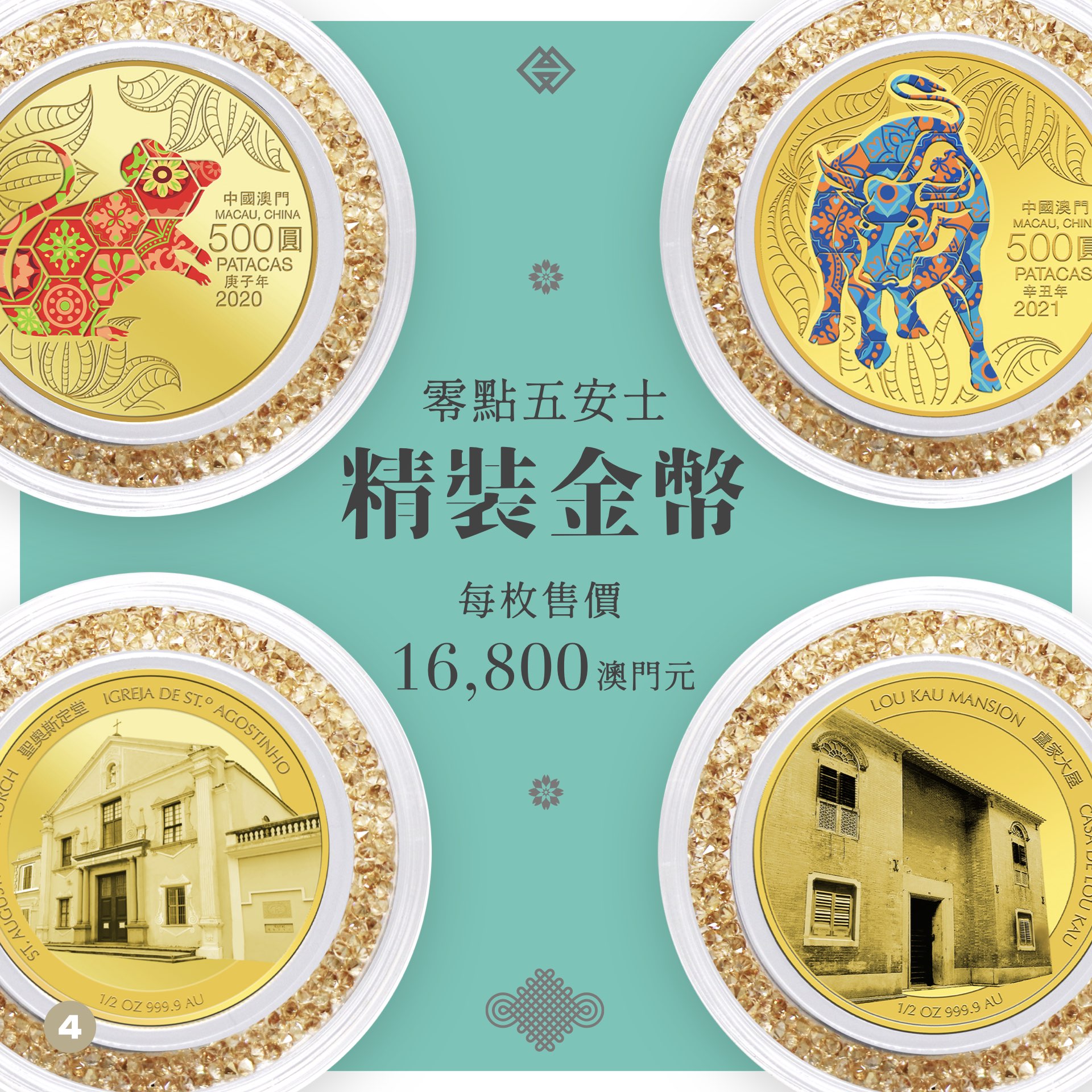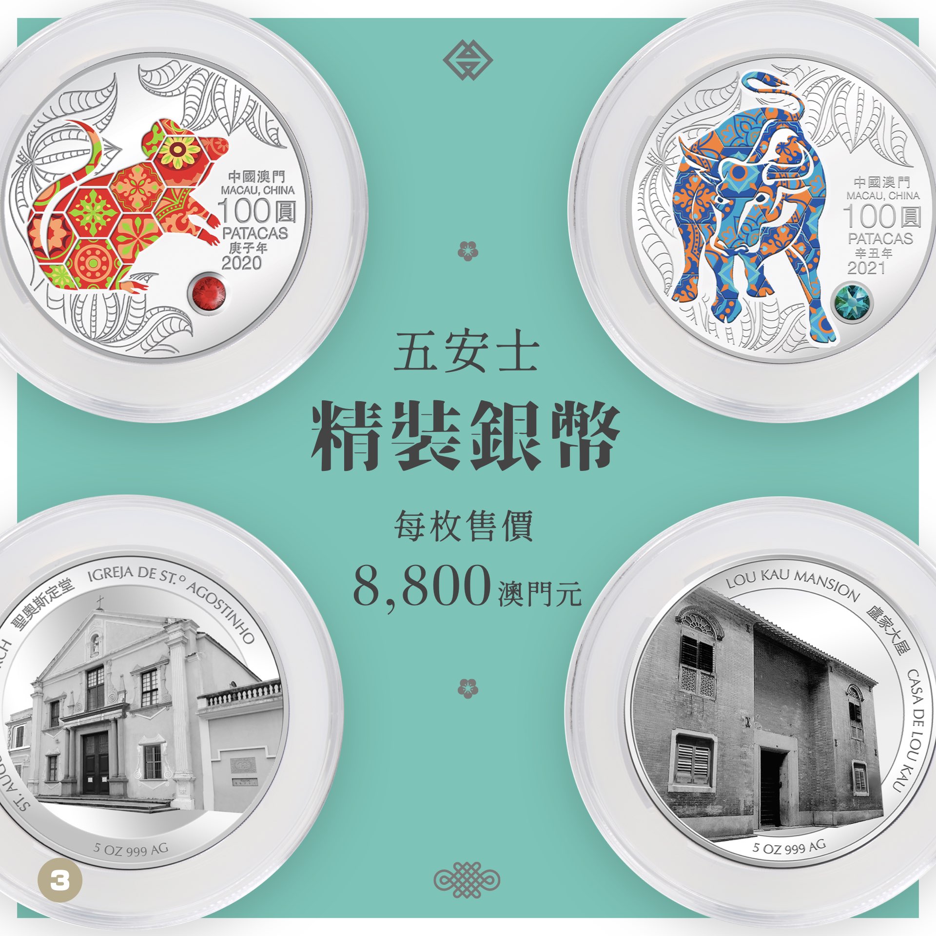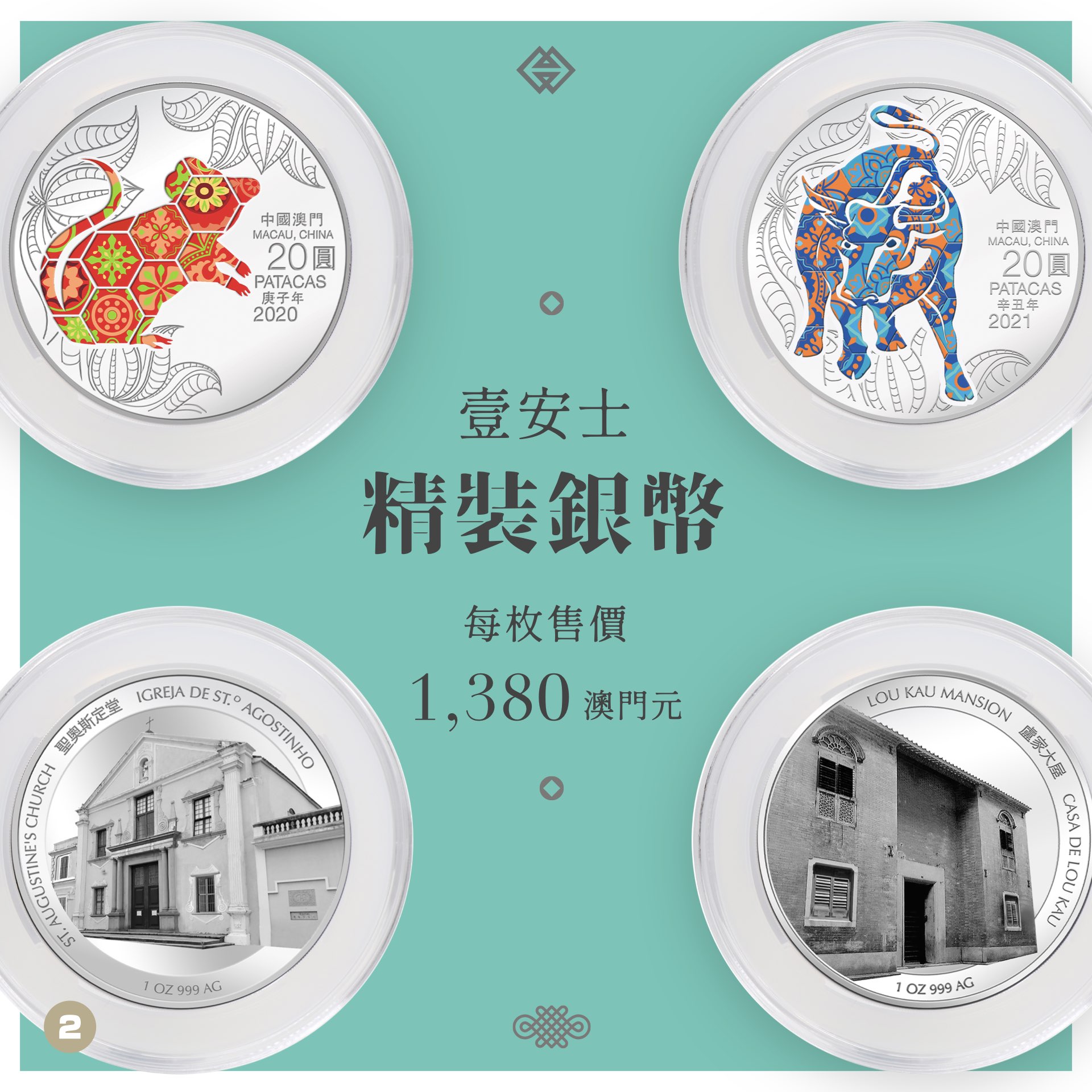 新一輪農曆生肖紀念幣採用全新設計,正面以色彩繽紛且具葡萄牙風格的圖案瓷磚構成農曆生肖圖案,背面則以嶄新高浮雕技術,從側面視覺立體地呈現澳門世界文化遺產景點。與上系列相近,是次發行的鼠年及牛年生肖紀念幣將包括壹安士及五安士精裝銀幣,而精裝金幣則由過往的零點二五安士加重至零點五安士,三款紀念幣的售價分別為1,380澳門元、8,800澳門元及16,800澳門元。