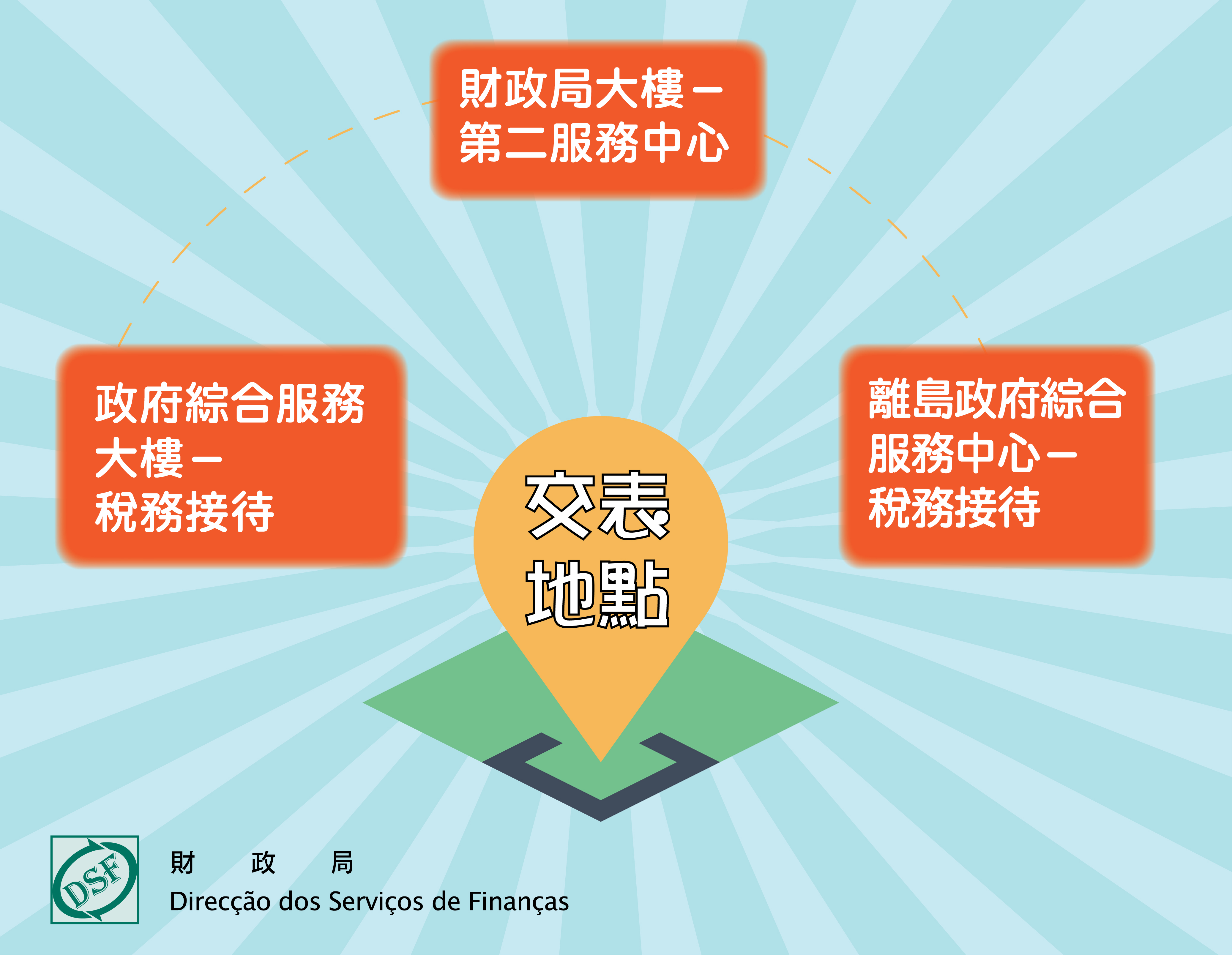 申報地點包括:(1)南灣財政局大樓-第二服務中心、(2)黑沙環政府綜合服務大樓-稅務接待,以及(3)離島政府綜合服務中心-稅務接待。如有疑問,歡迎致電稅務諮詢熱線2833 6886查詢。