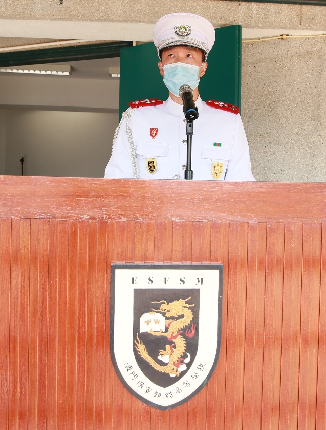 黃子暉校長在結業禮致辭時表示,課程從各方面培育學員成為合資格的海關關員,提醒毋忘初心,認真履行職責,展現澳門保安部隊及保安部門專業精幹的一面,勉勵學員要時刻保持學習態度,不斷提升自身能力,忠實履職,不要辜負市民對大家的期望,維護好社會的秩序和安寧。
