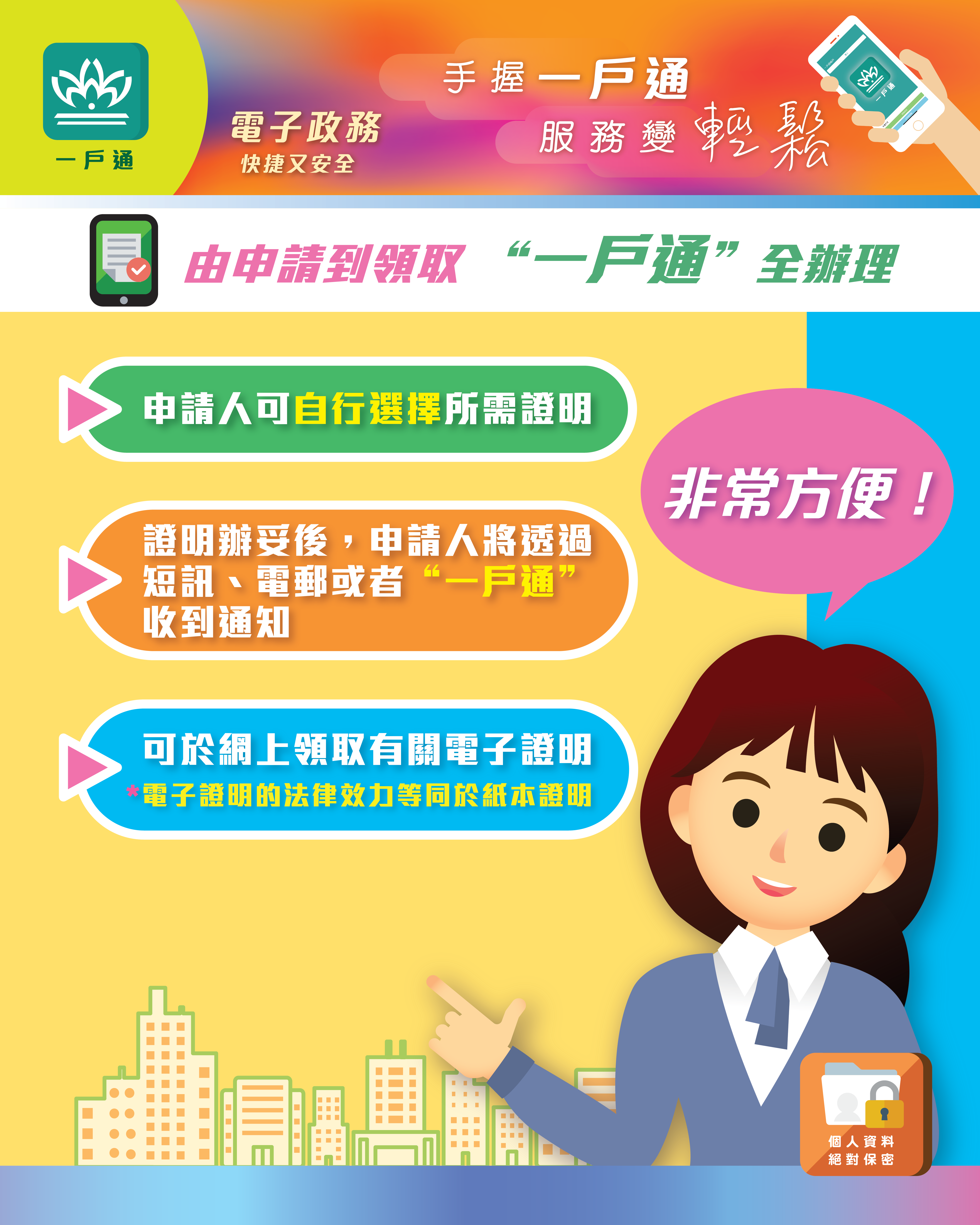 隨著網上申領電子證明服務的推出,標誌着跨部門合作及電子政務發展的重要階段,提高服務質素,讓市民足不出戶便可辦理政府服務。